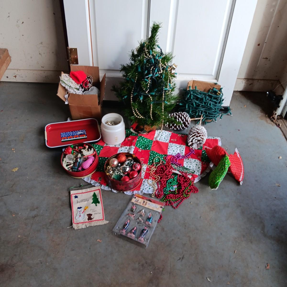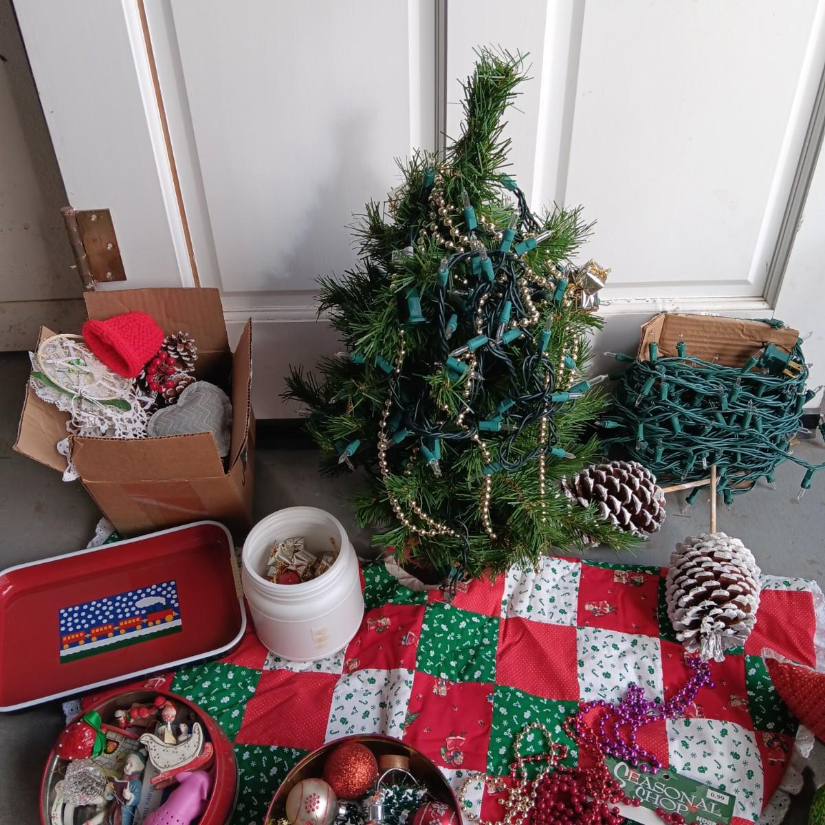 SMALL TREE AND OTHER CHRISTMAS DECORATIONS