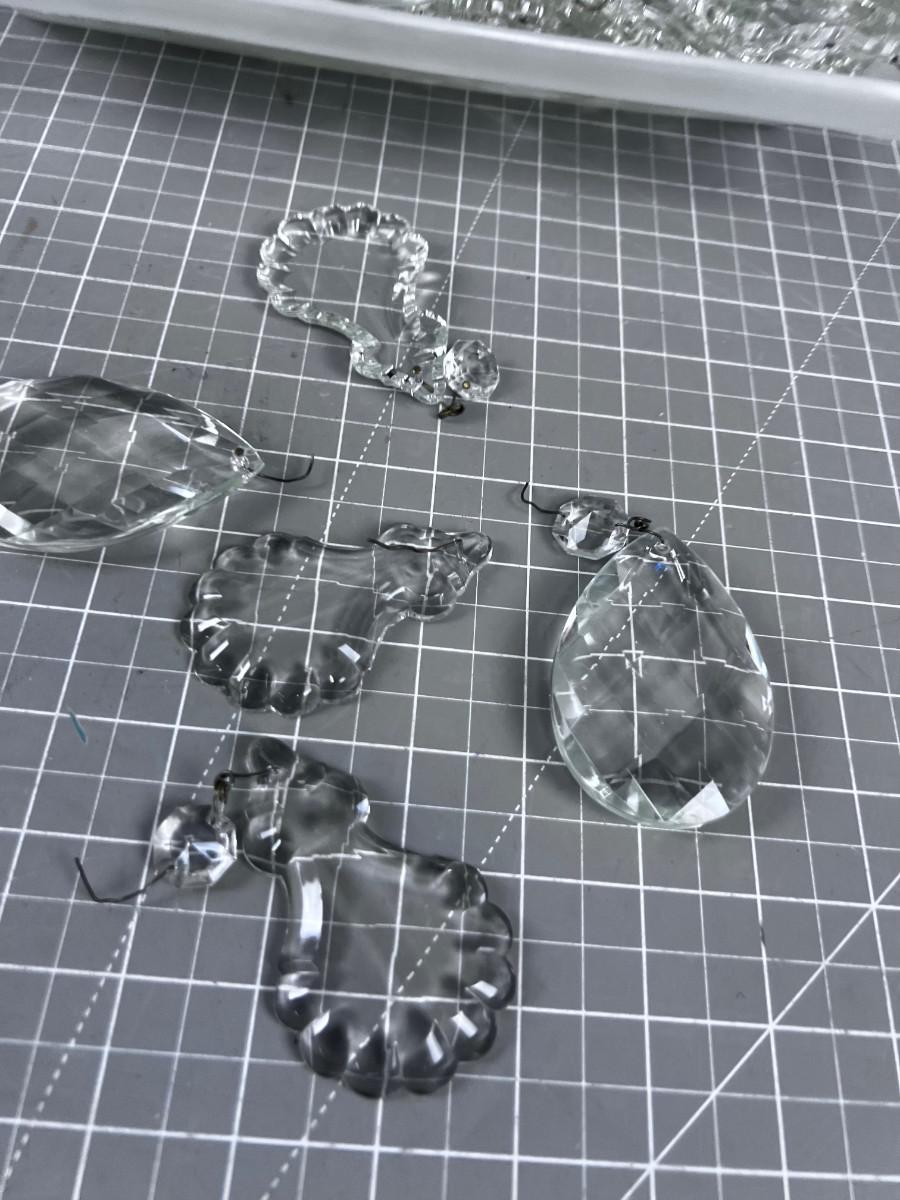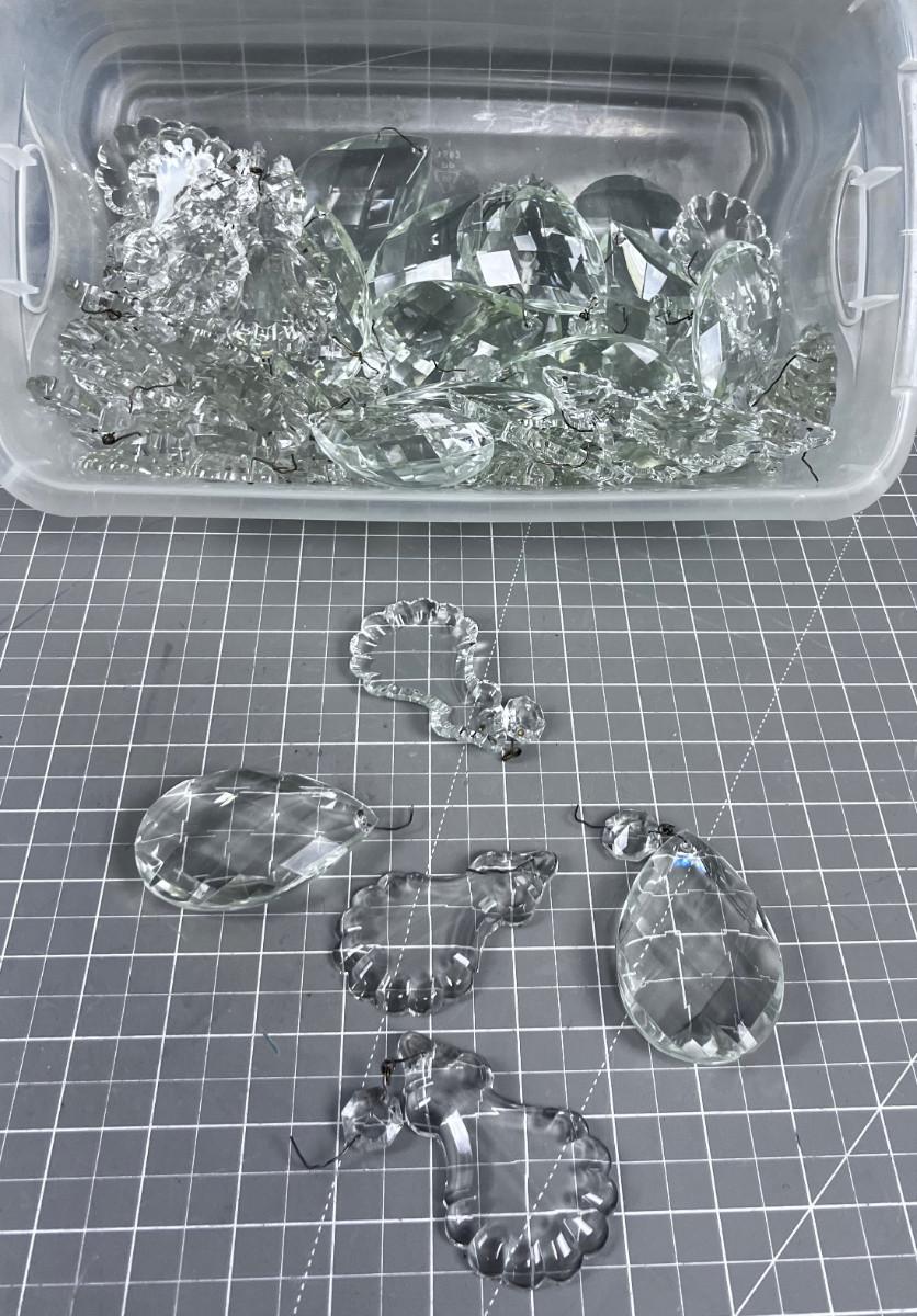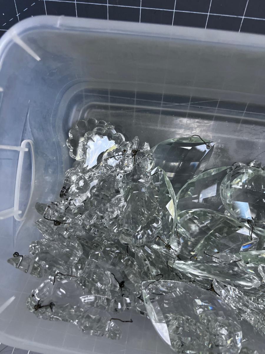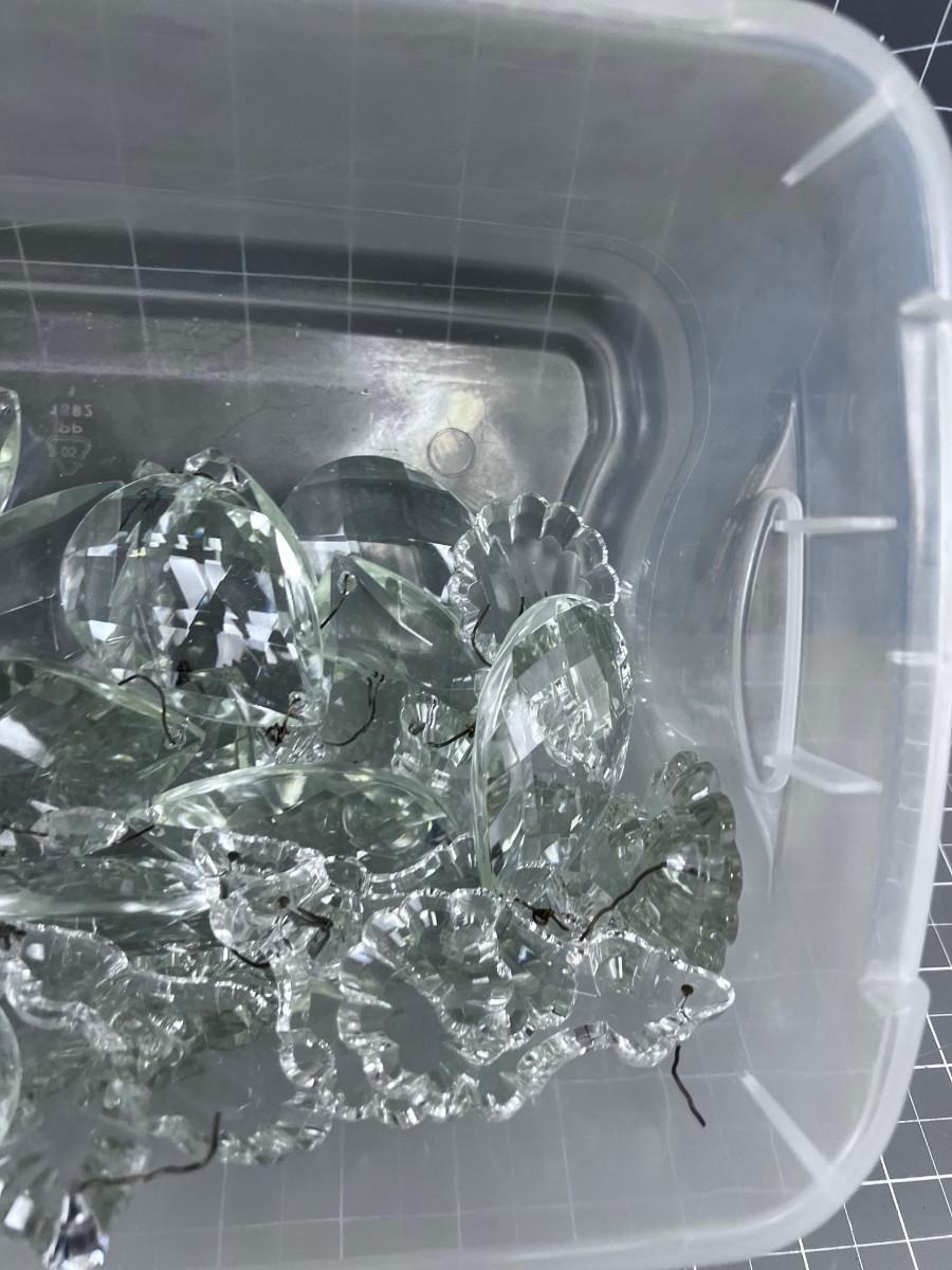 Small Tub Full of GLASS Chandelier Tear Drops, Antique Etc.