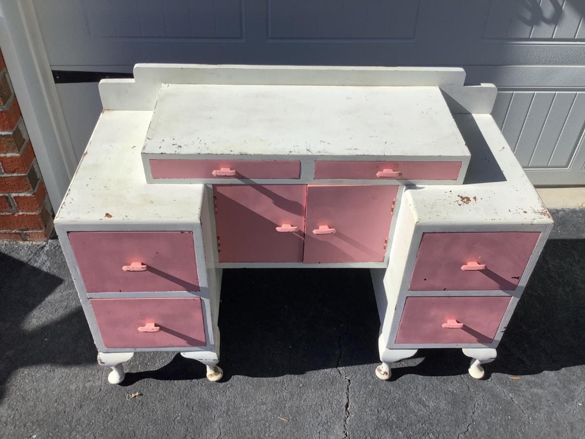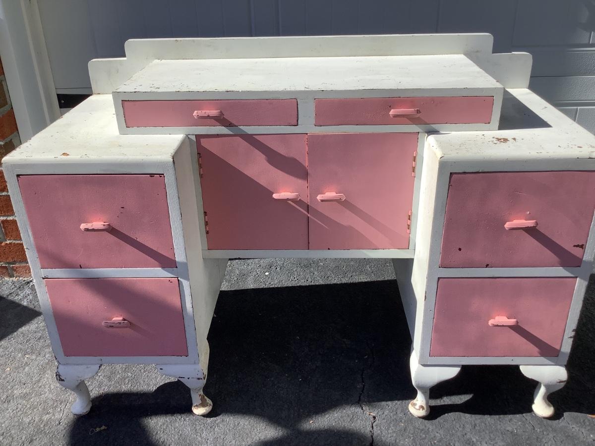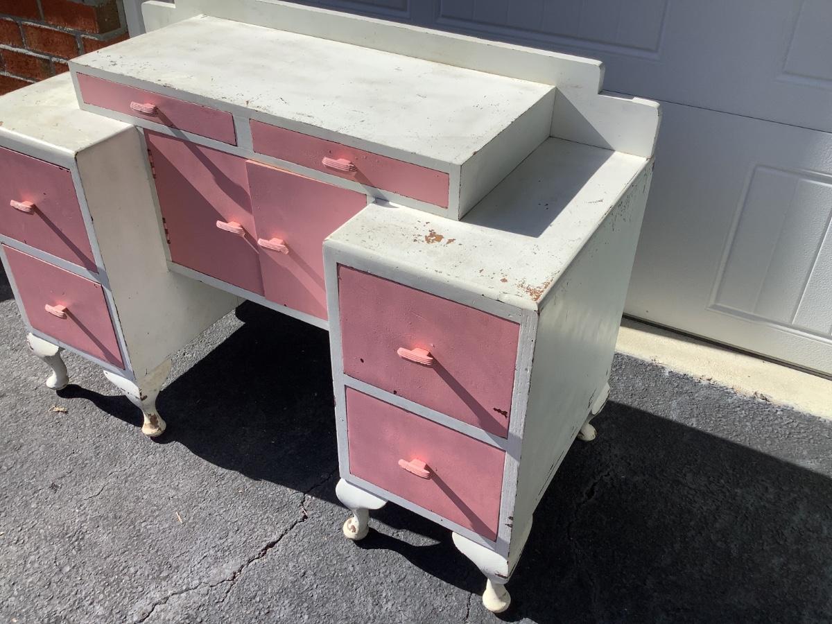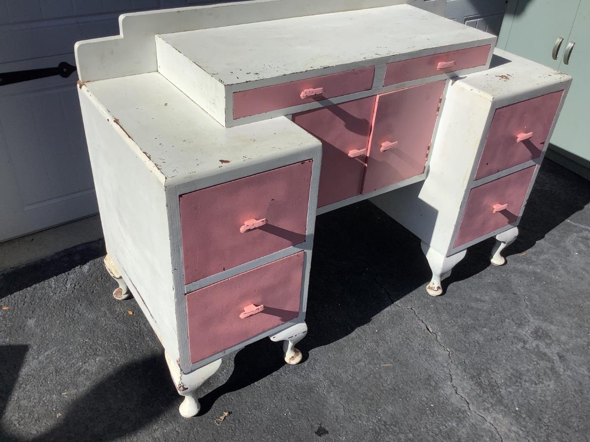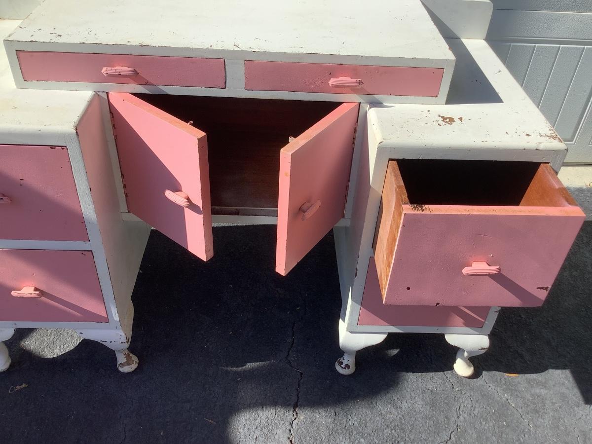 Small Vanity Pink & White wooden, dovetail 29"H 42"W 19"depth