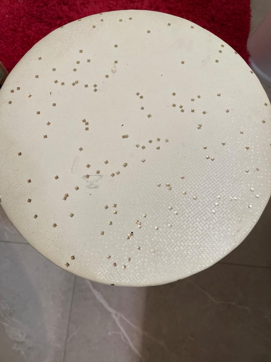 Small vanity stool and red rug