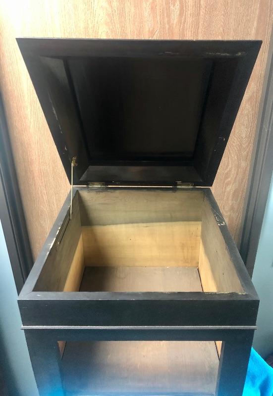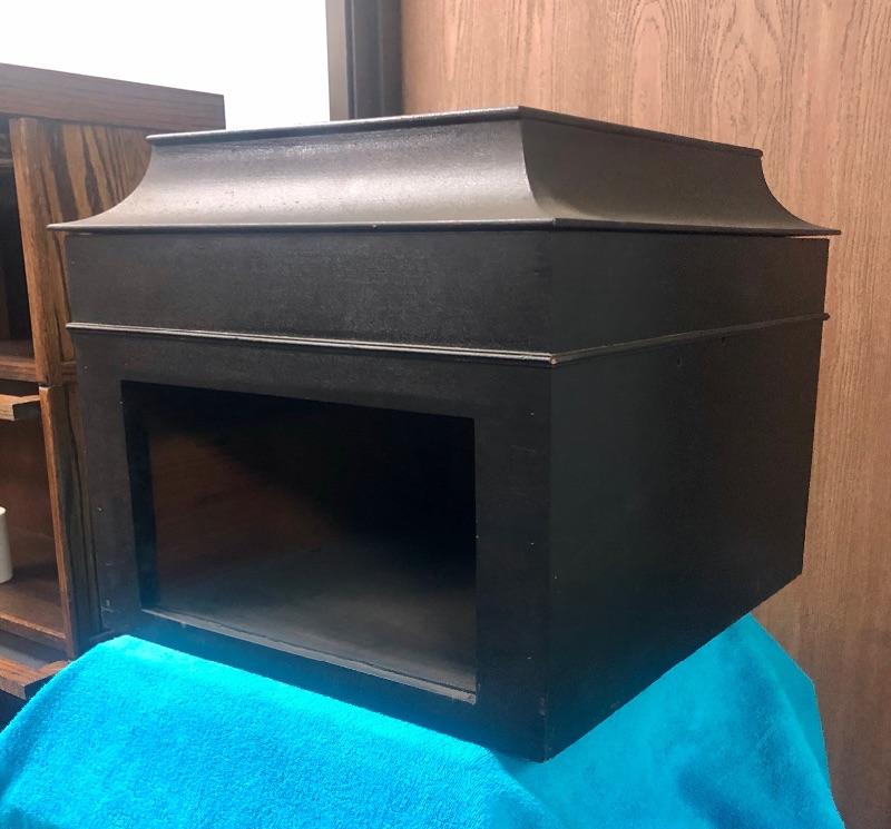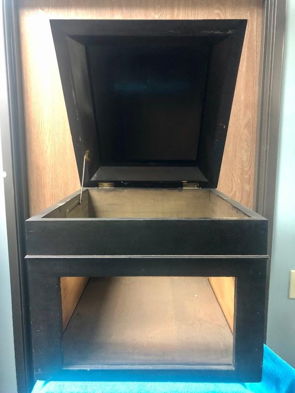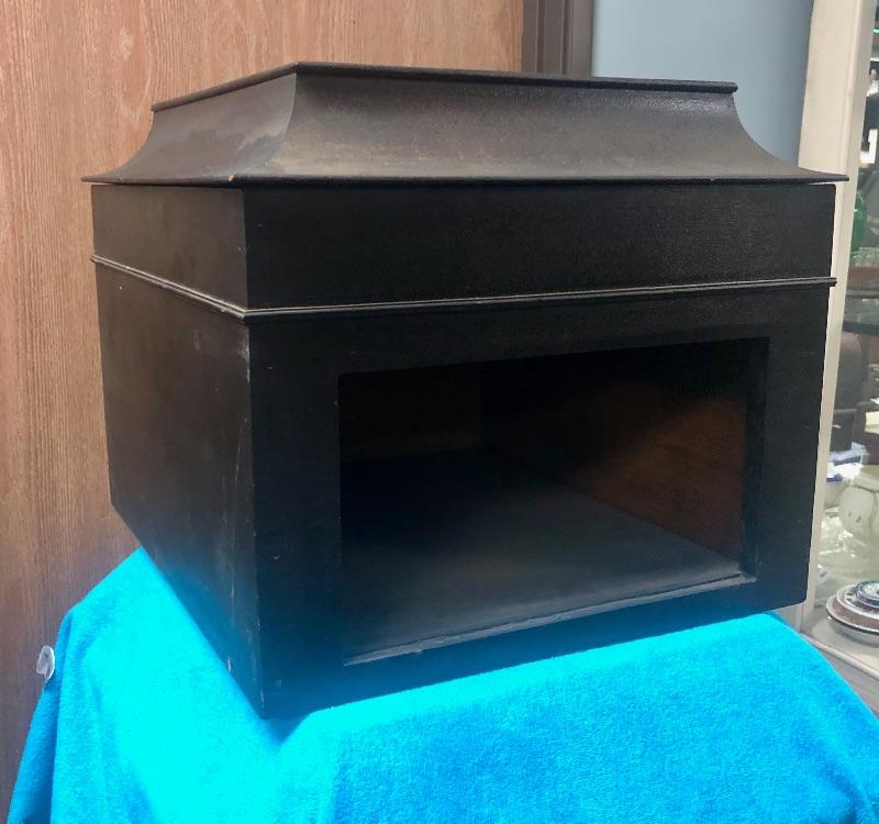 Small Victrola Style Box. Could be used for a modern turntable/radio or as a faux Victrola decor piece. Measures 17"x15"x18".