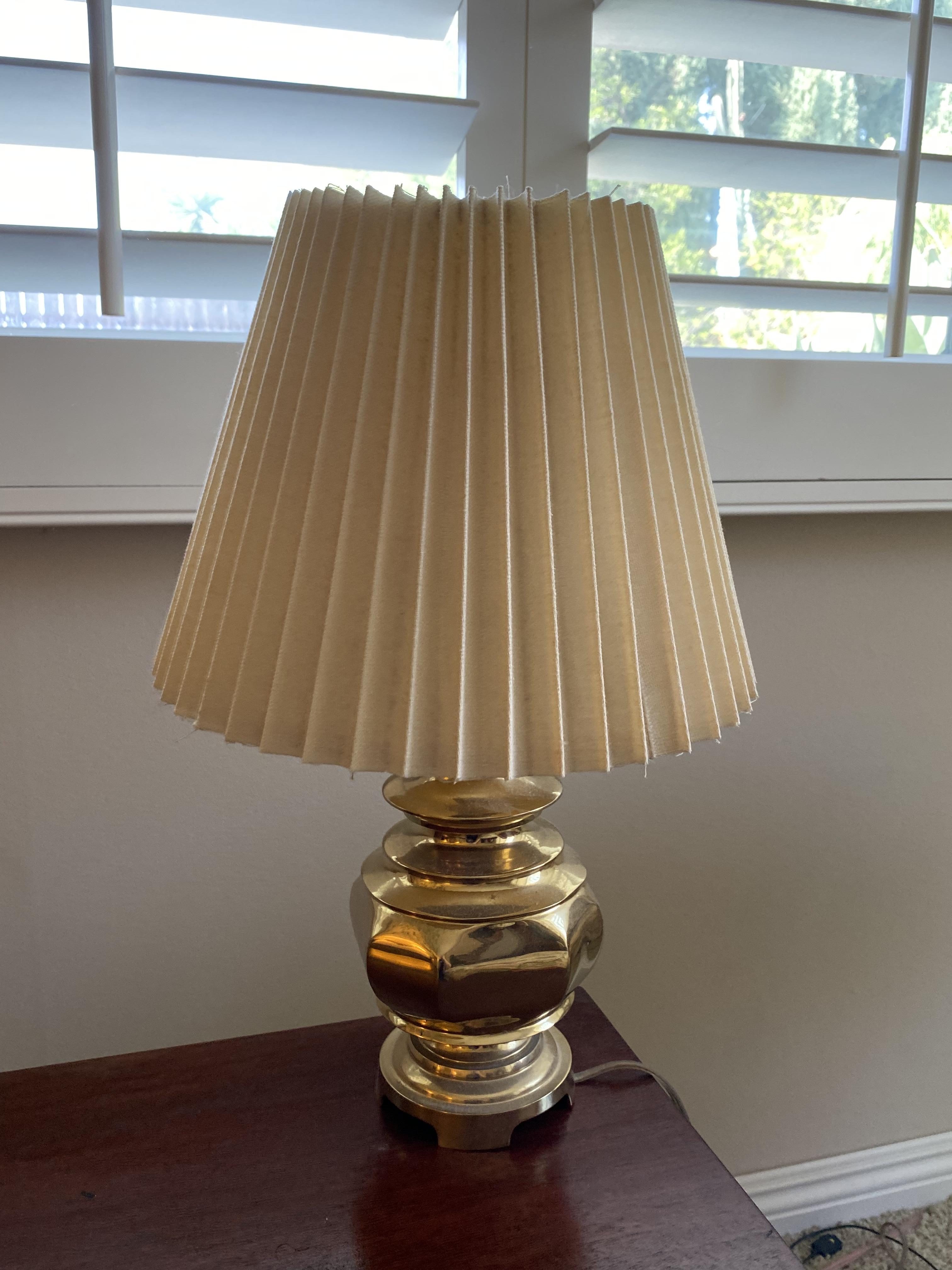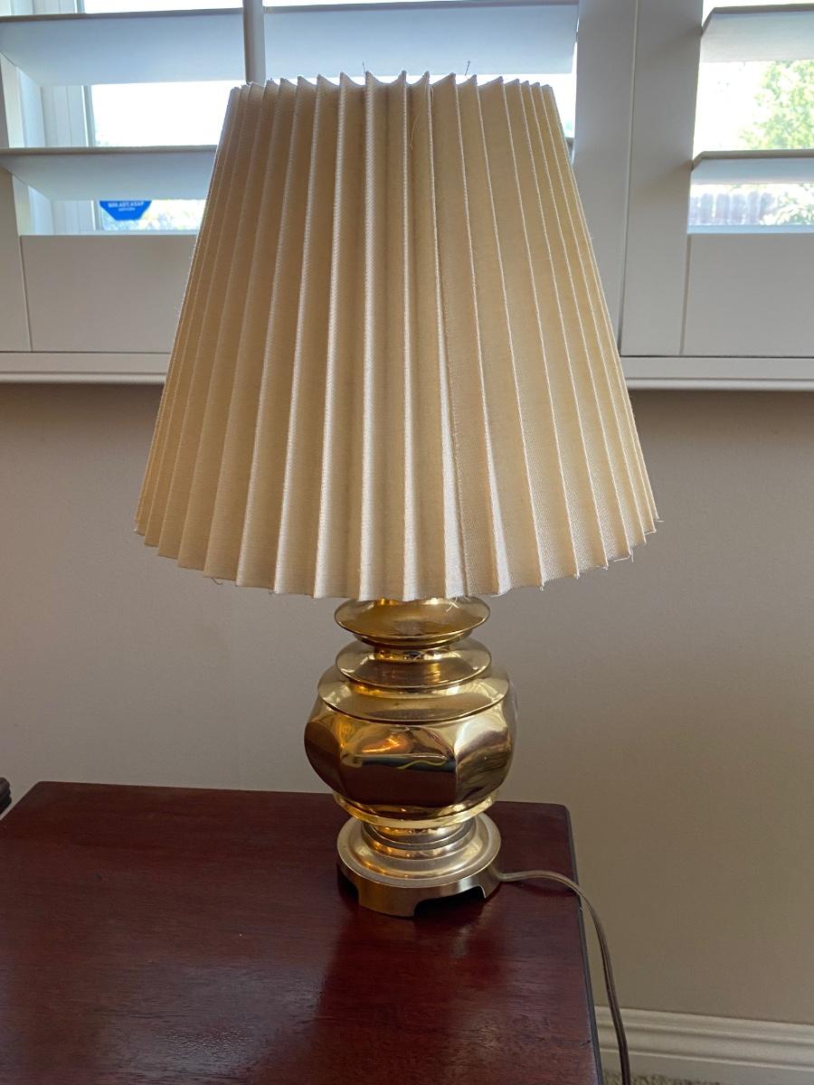 Small Vintage Brass Table Desk Lamp with Shade. Works. Small size about 16.5" at top of shade.