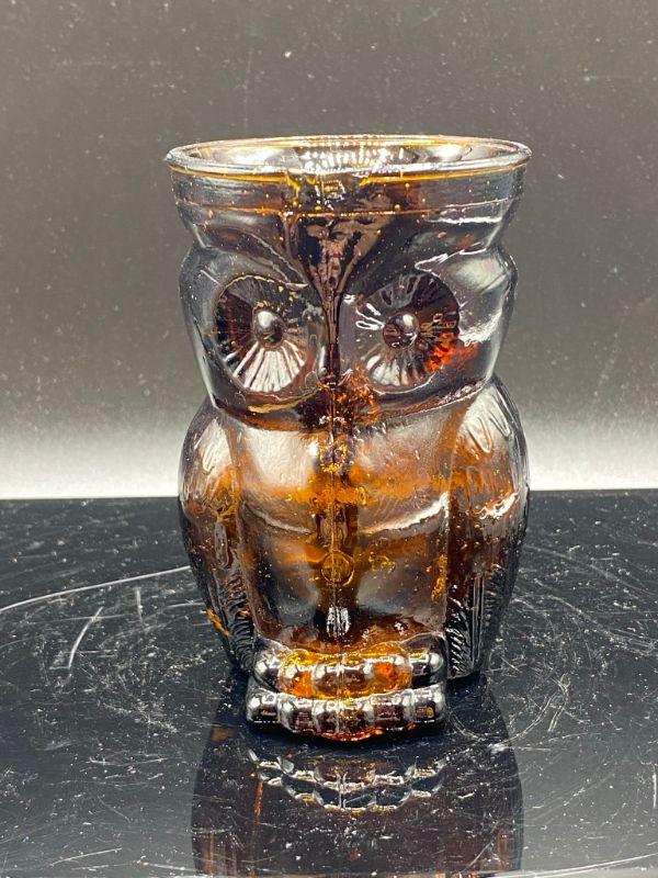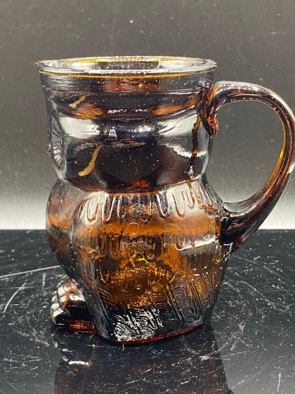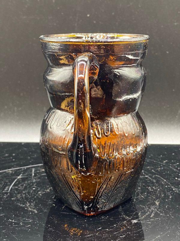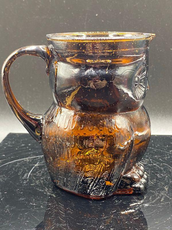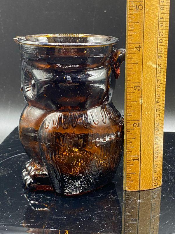 Vintage brown glass owl pitcher. Small, only 4" tall. Great condition, no chips. Unbranded. Made in Taiwan. The must have addition to ones owl collection.
