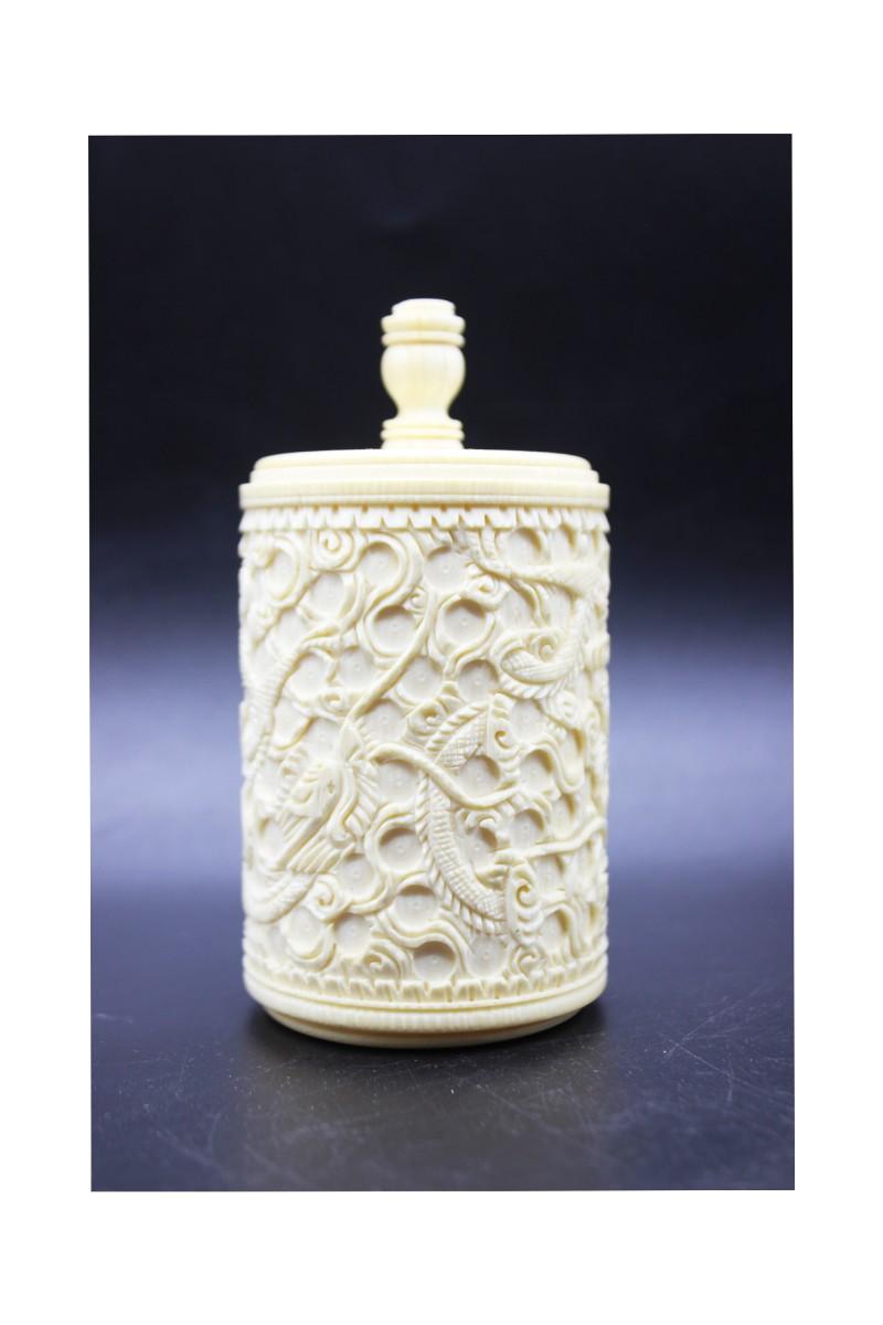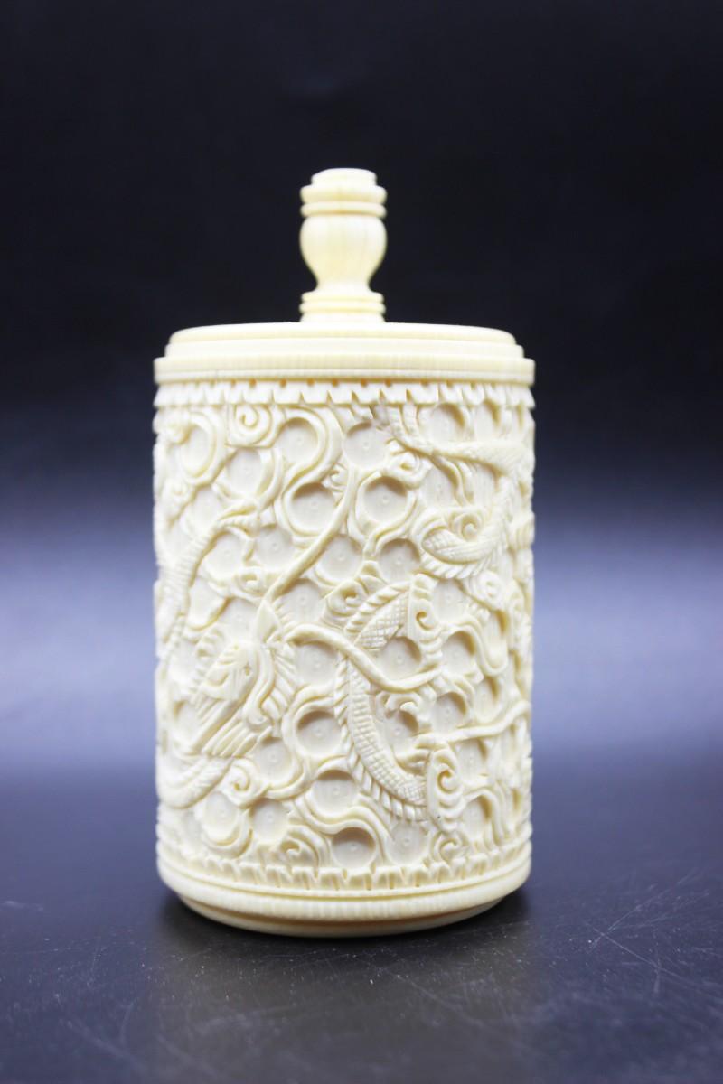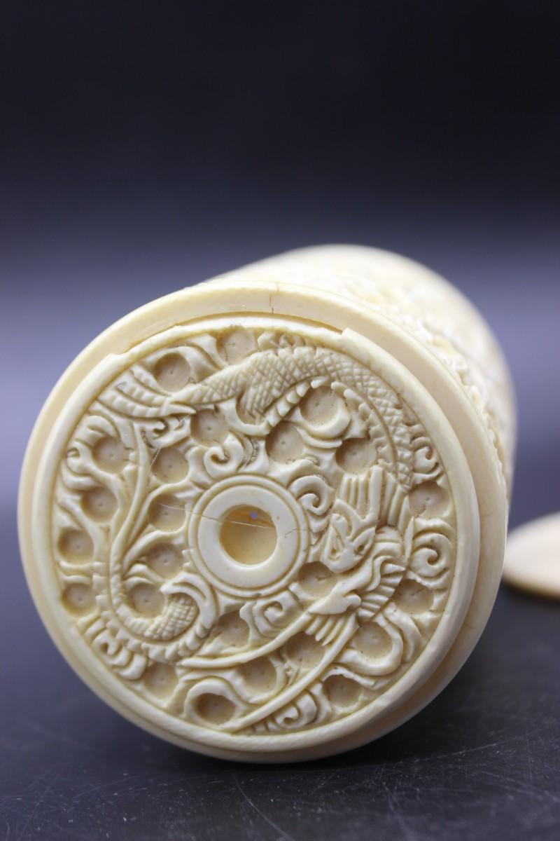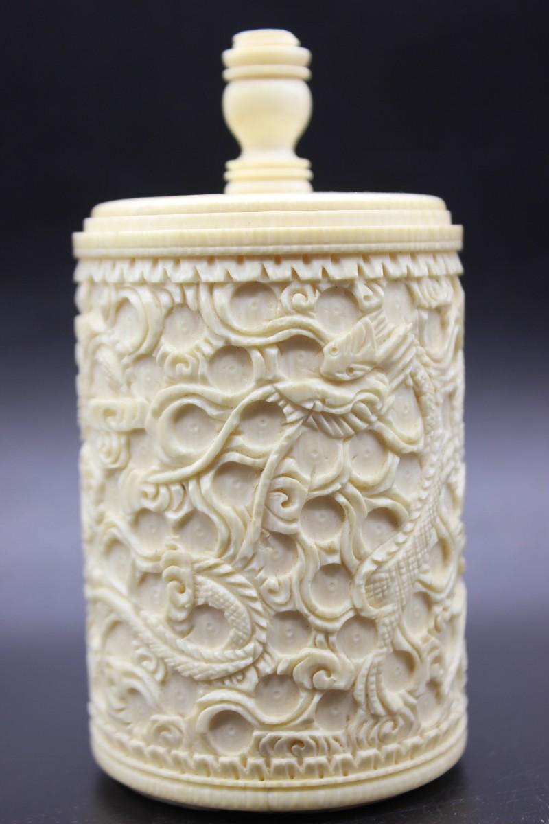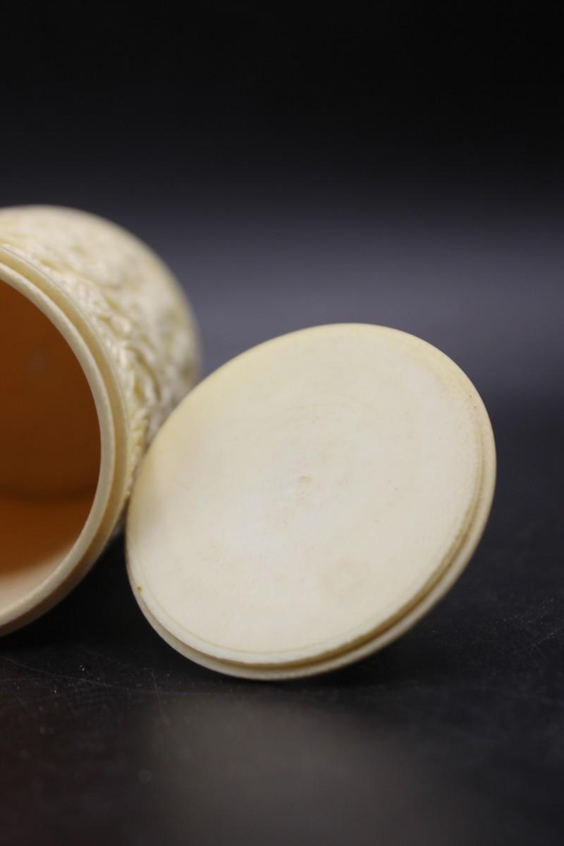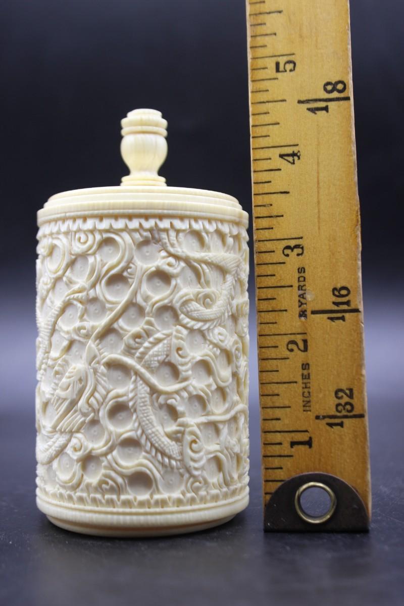 Small Vintage Carved Celluloid Oriental Pattern Vessel Container