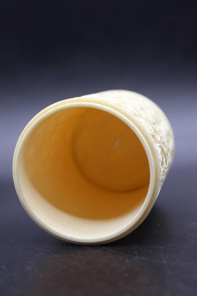 Small Vintage Carved Celluloid Oriental Pattern Vessel Container, there is a slight crack on the bottom of the vessel, but there is no other significant damage and is in good vintage condition. Check pictures for more details and for sizing.