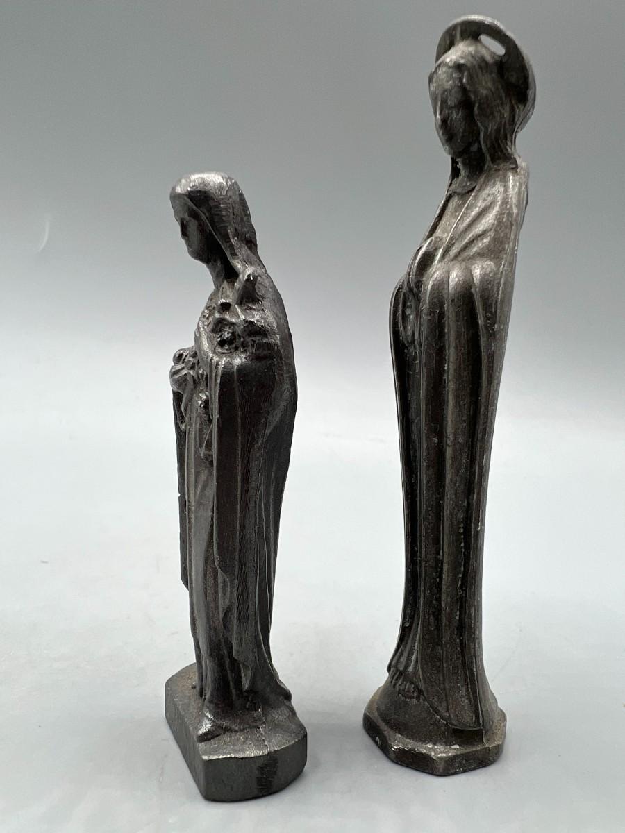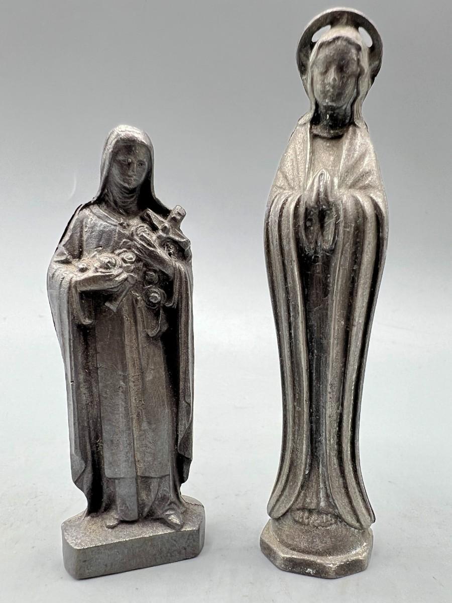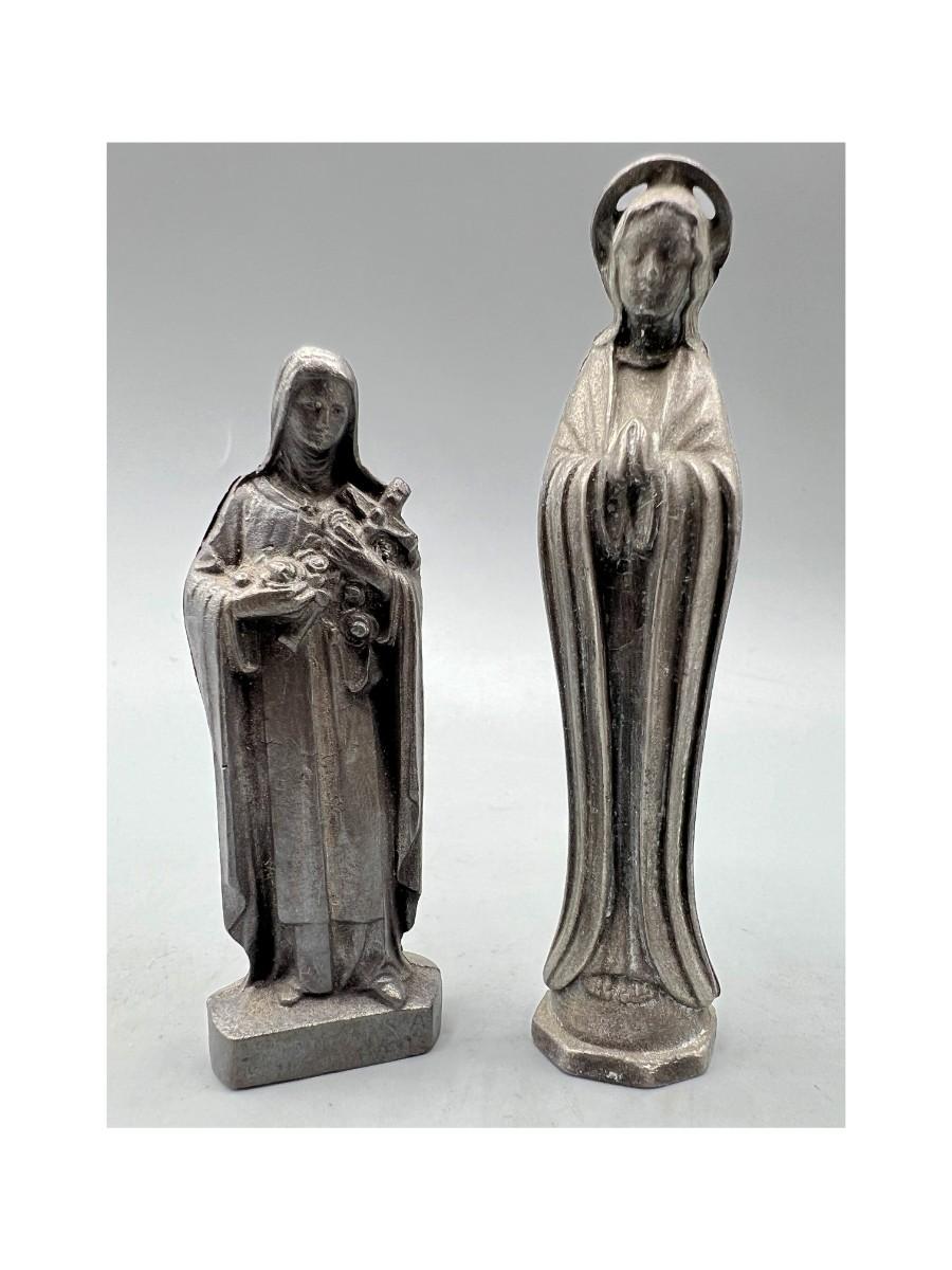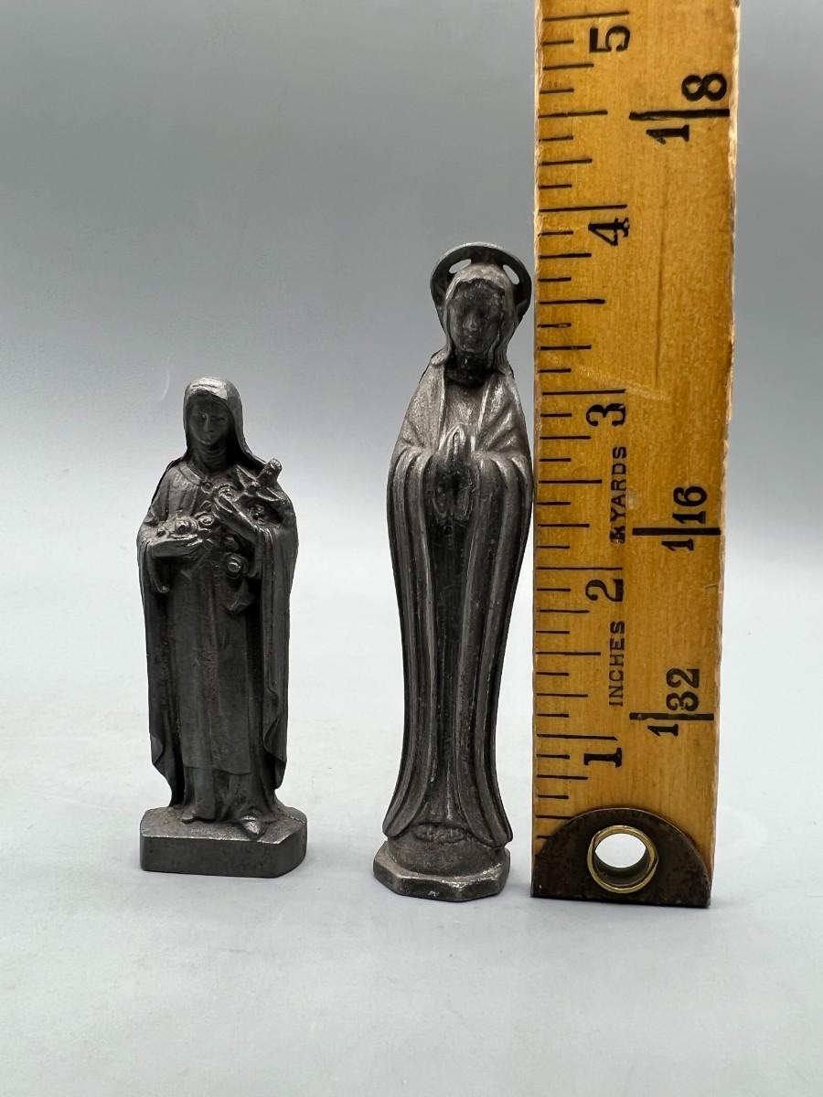 Small Vintage Cast Metal Figurine Religious Virgin Mary Saint Statuettes