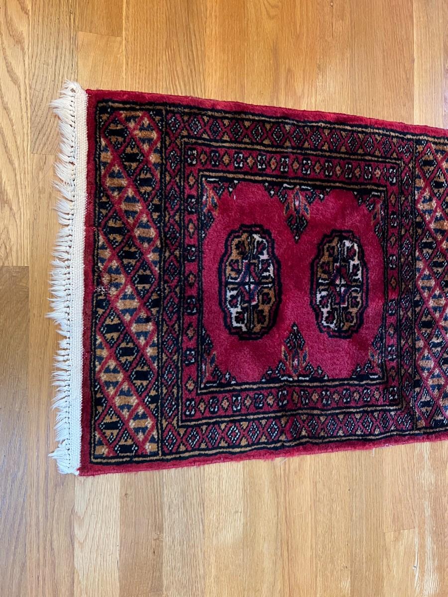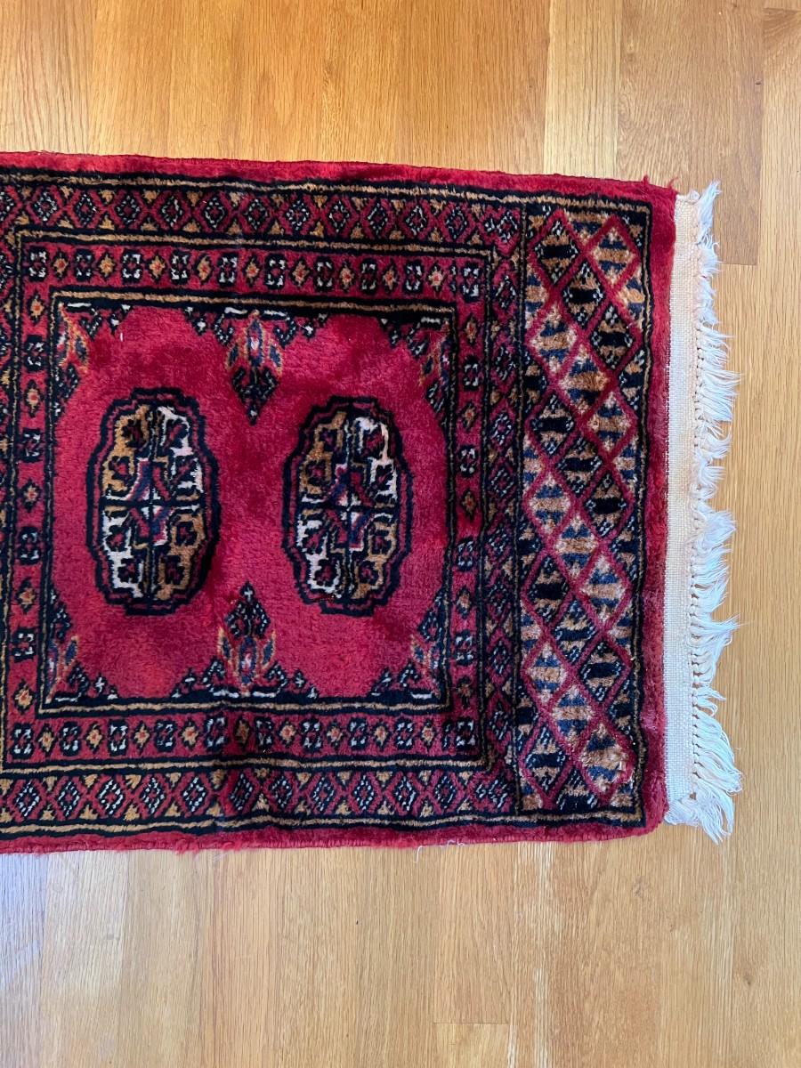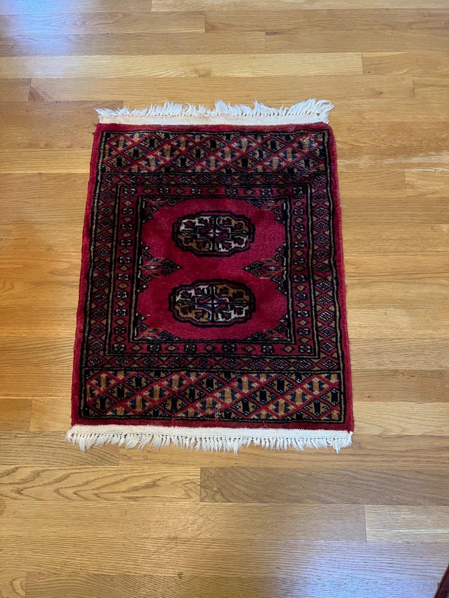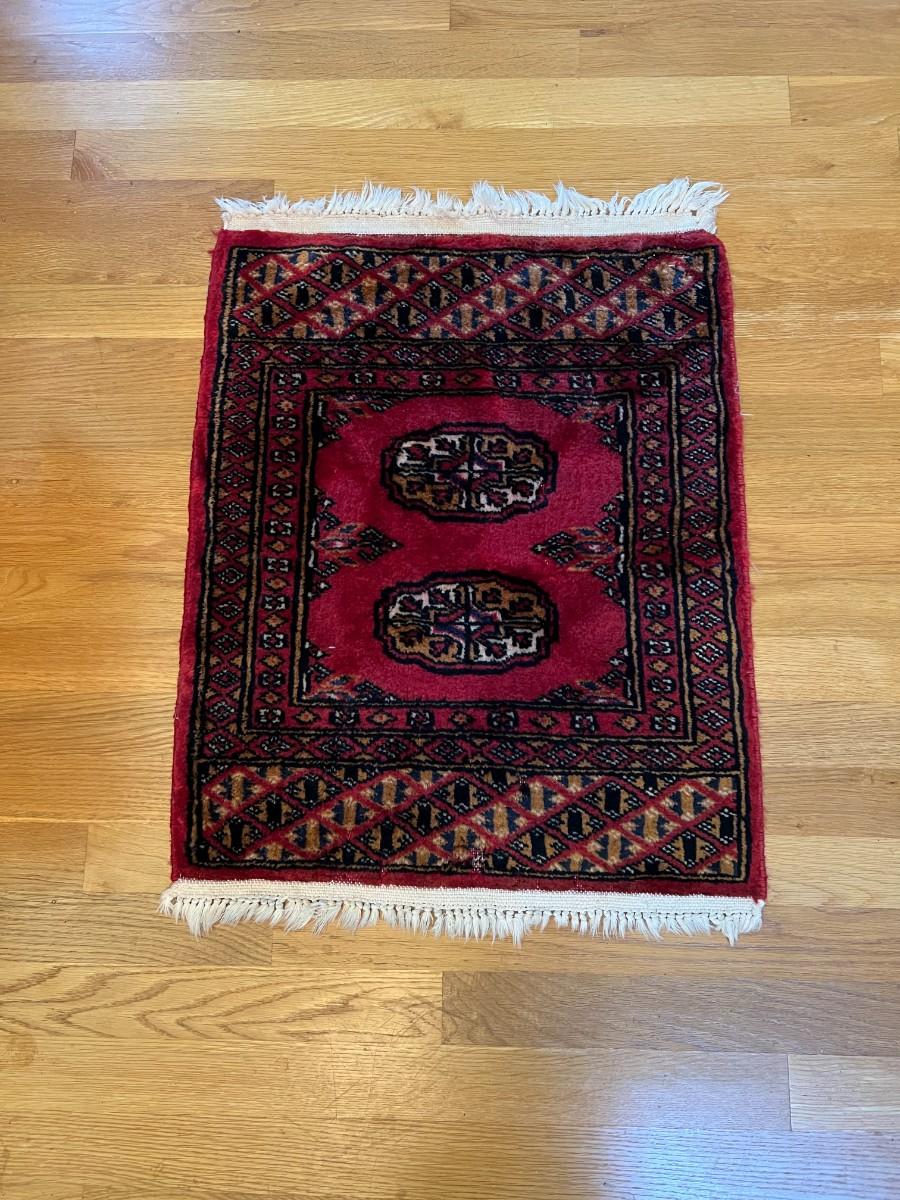 Small Vintage Hand Woven Knotted Rug with Lucky 8 Design