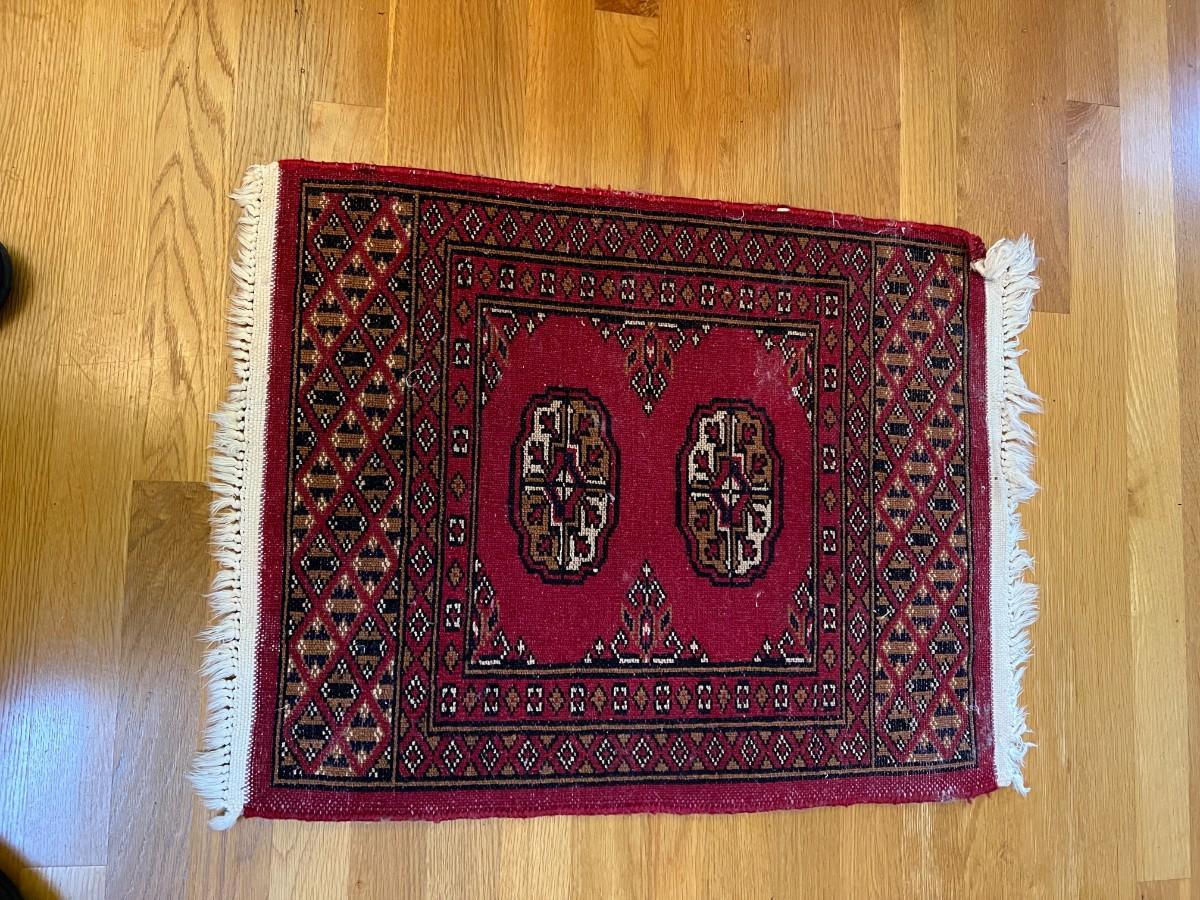 Small Hand Woven Knotted Rug with Lucky 8 Design. In good condition, as shown.