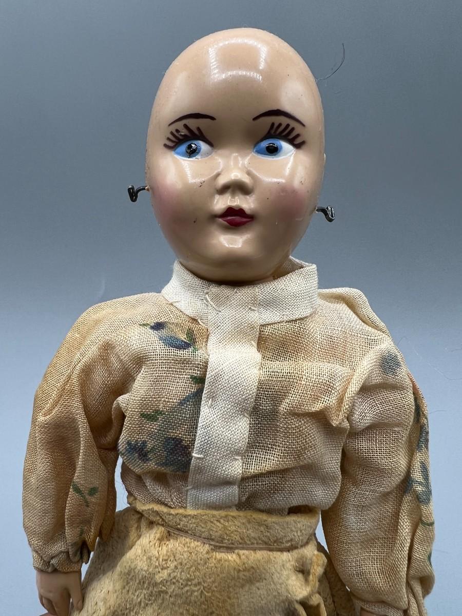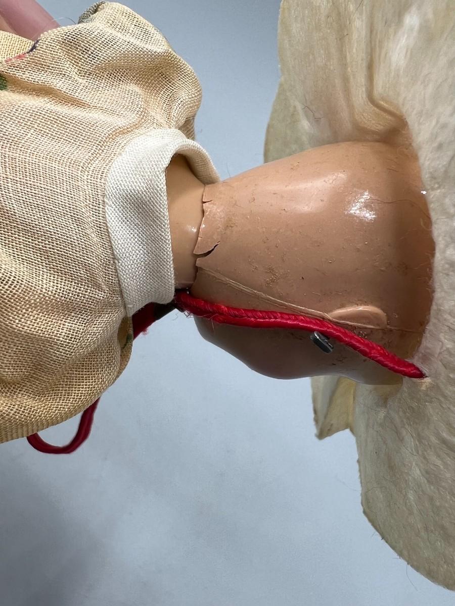 There is vintage wear to the doll, but there is no significant damage and is in overall fair condition. Check pictures for more details and for sizing.