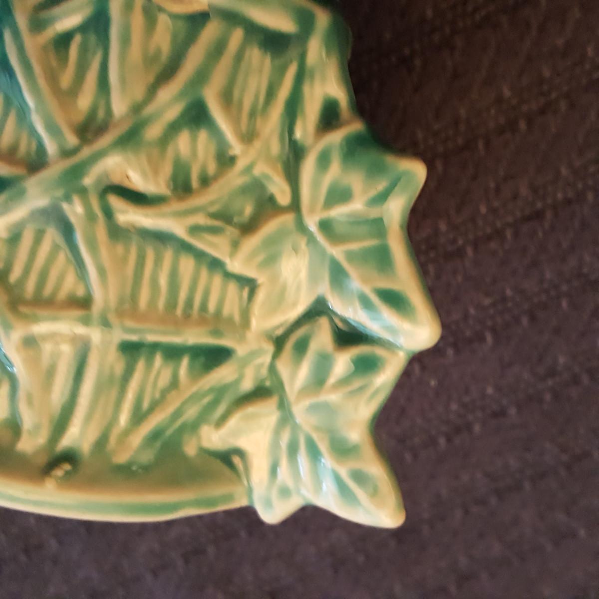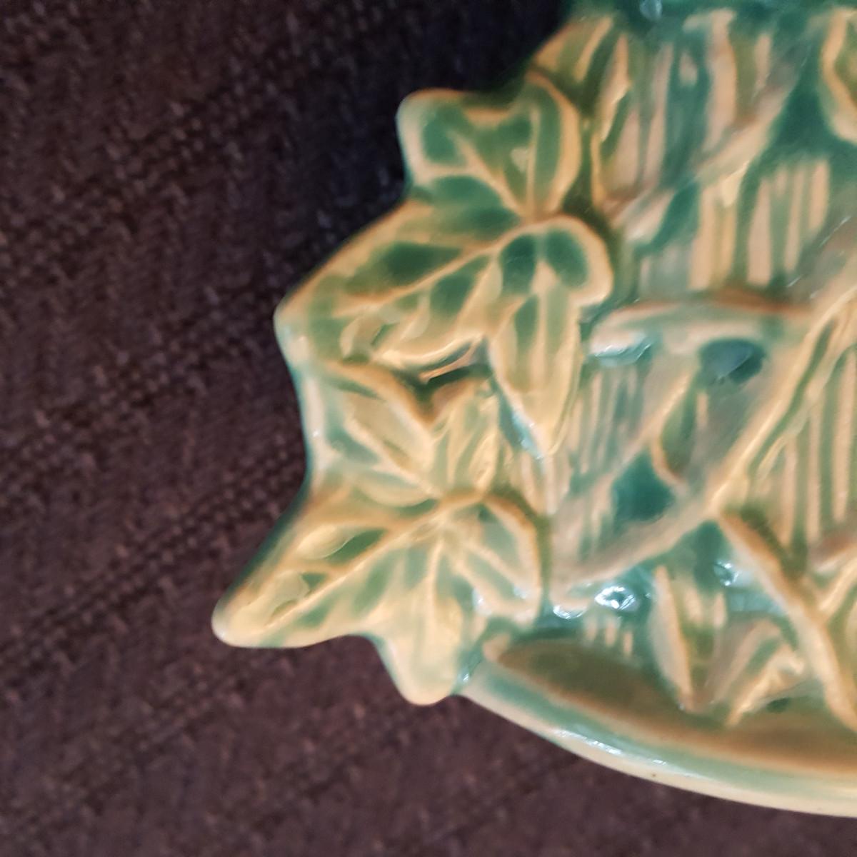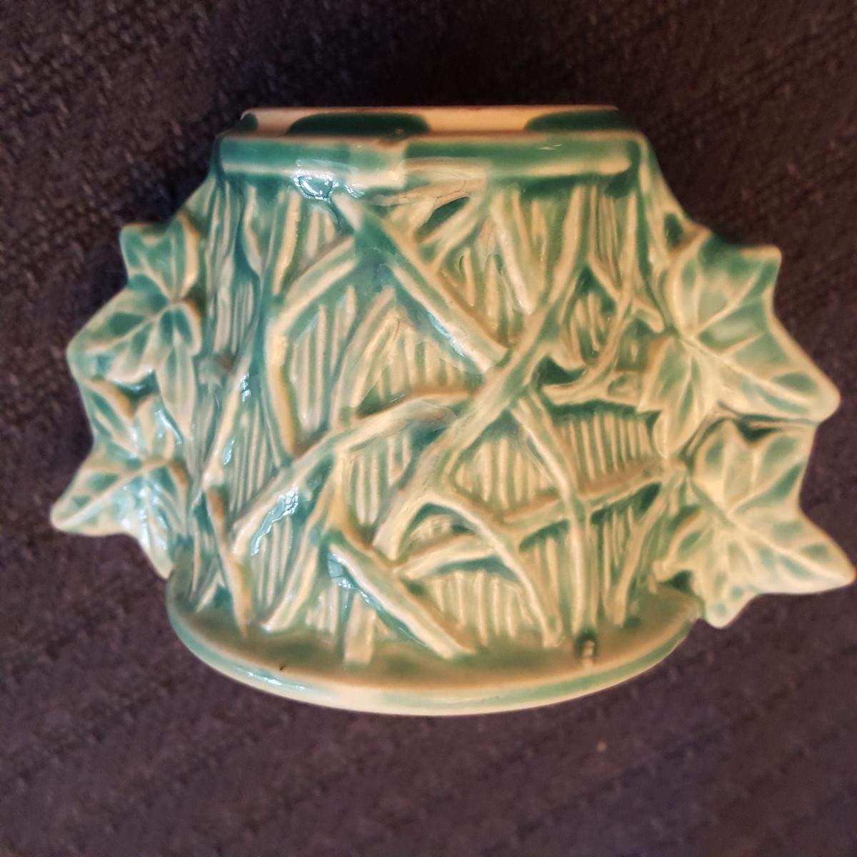 This auction lot is for a small Vintage McCoy Pot. This fun pot/vase is just perfect for a miniature succulent or two. The pot is a great turquoise-y color and has deep, defined molding with leaf handles. So cute. See photo for sizing.