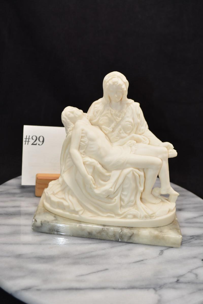 Small Vintage Michaelangelo’s ‘La Pieta’ Resin on Marble Base 6.5”x6”x3”