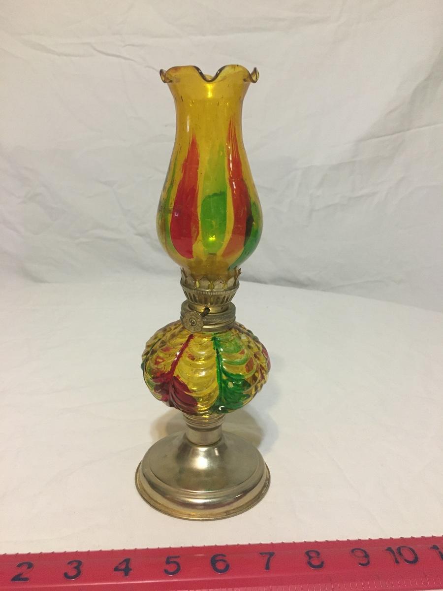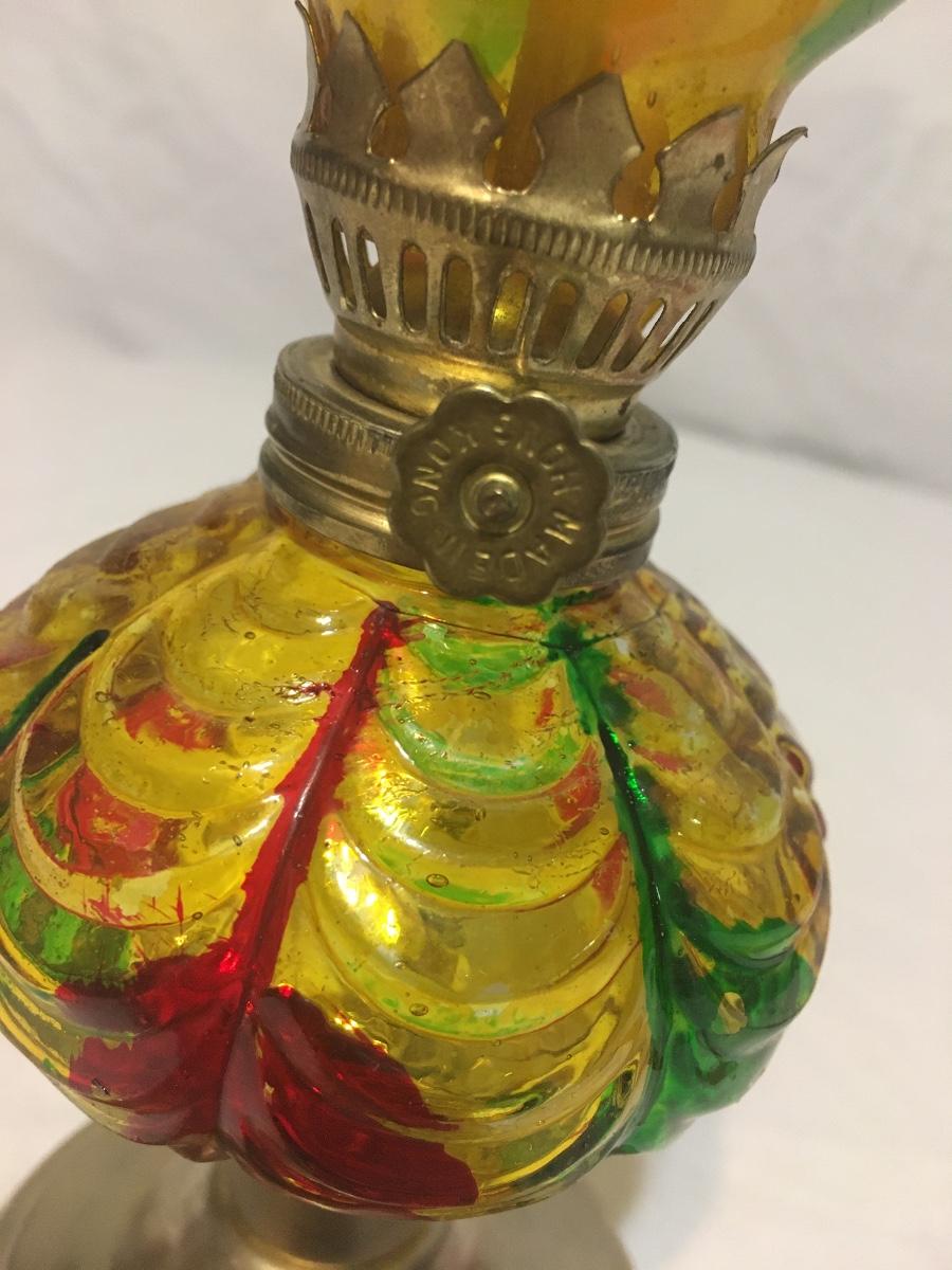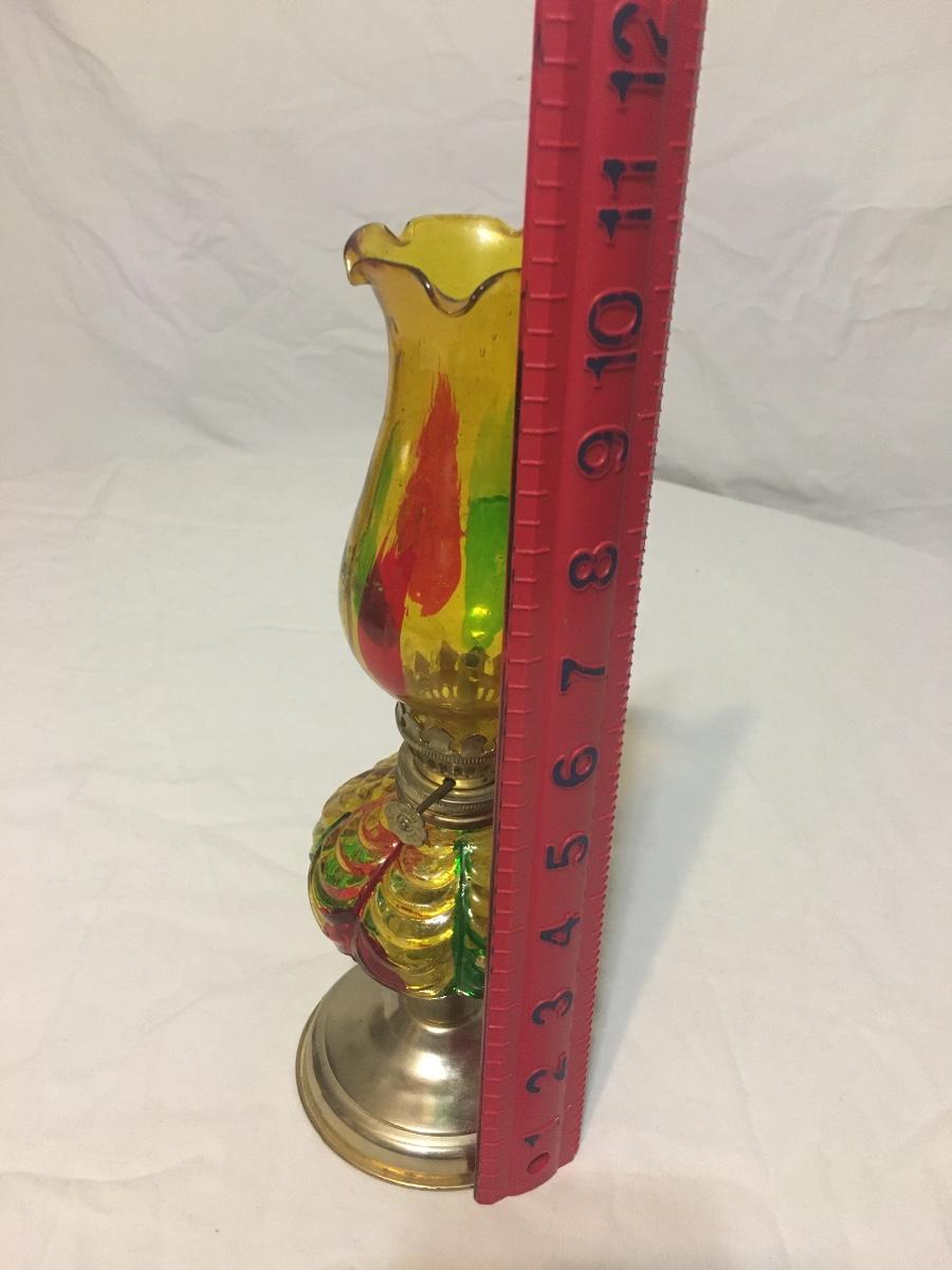 Small Vintage Oil Lamp. Amber Glass. With  Color Accents.