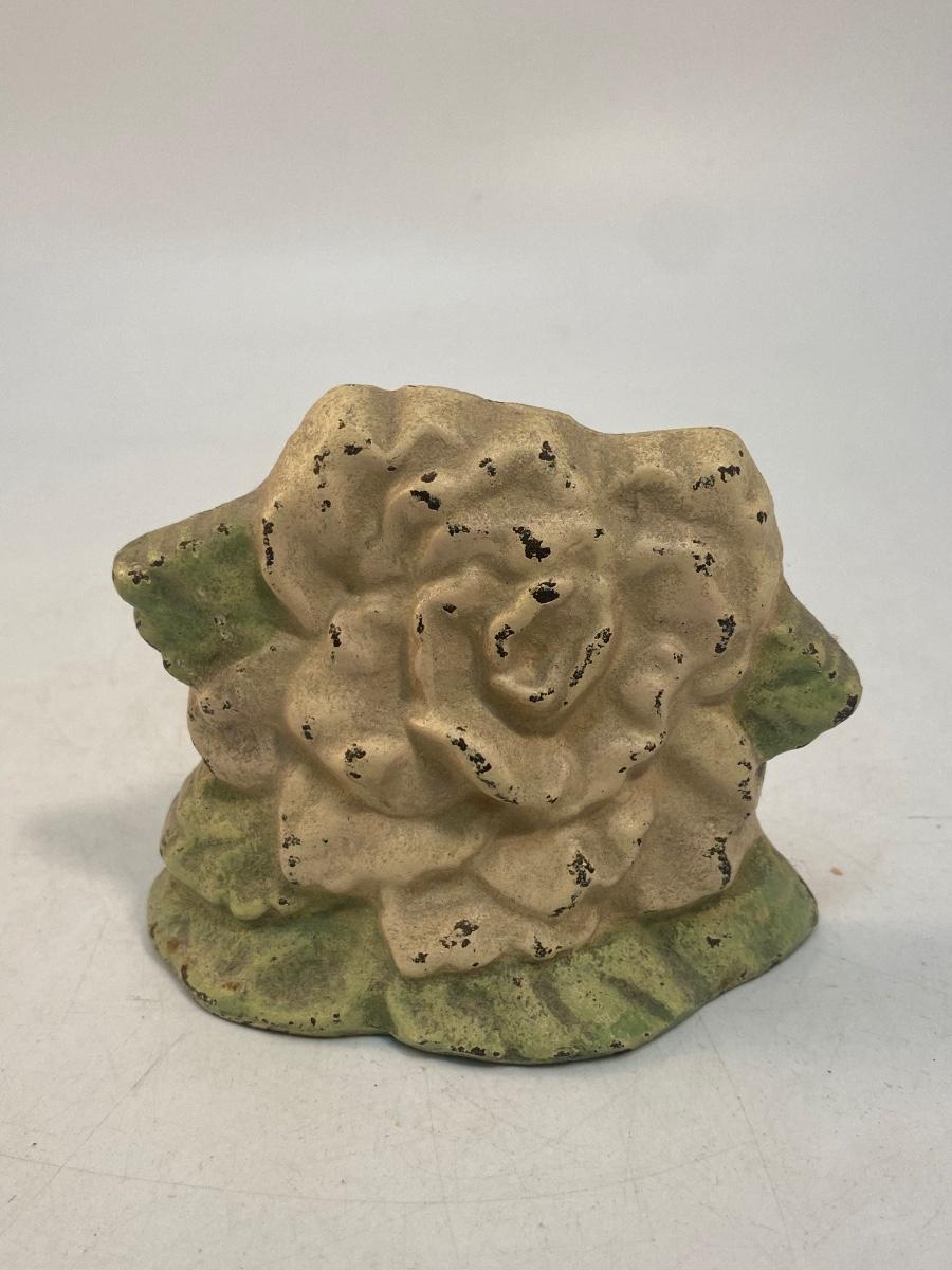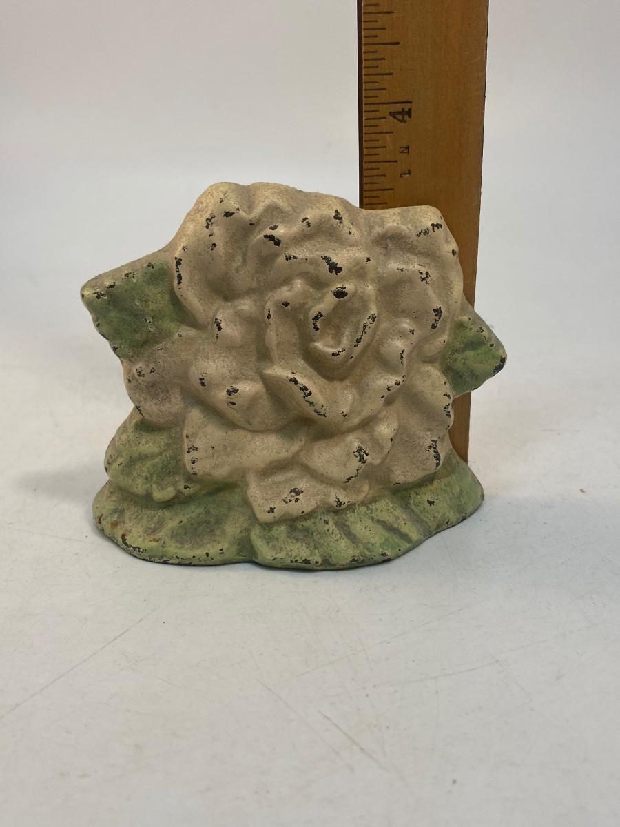 Small Vintage Painted Cast Iron Metal Rose Flower Doorstop