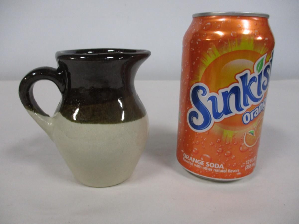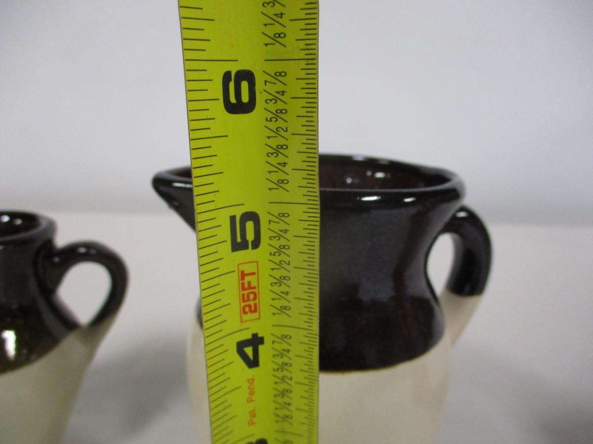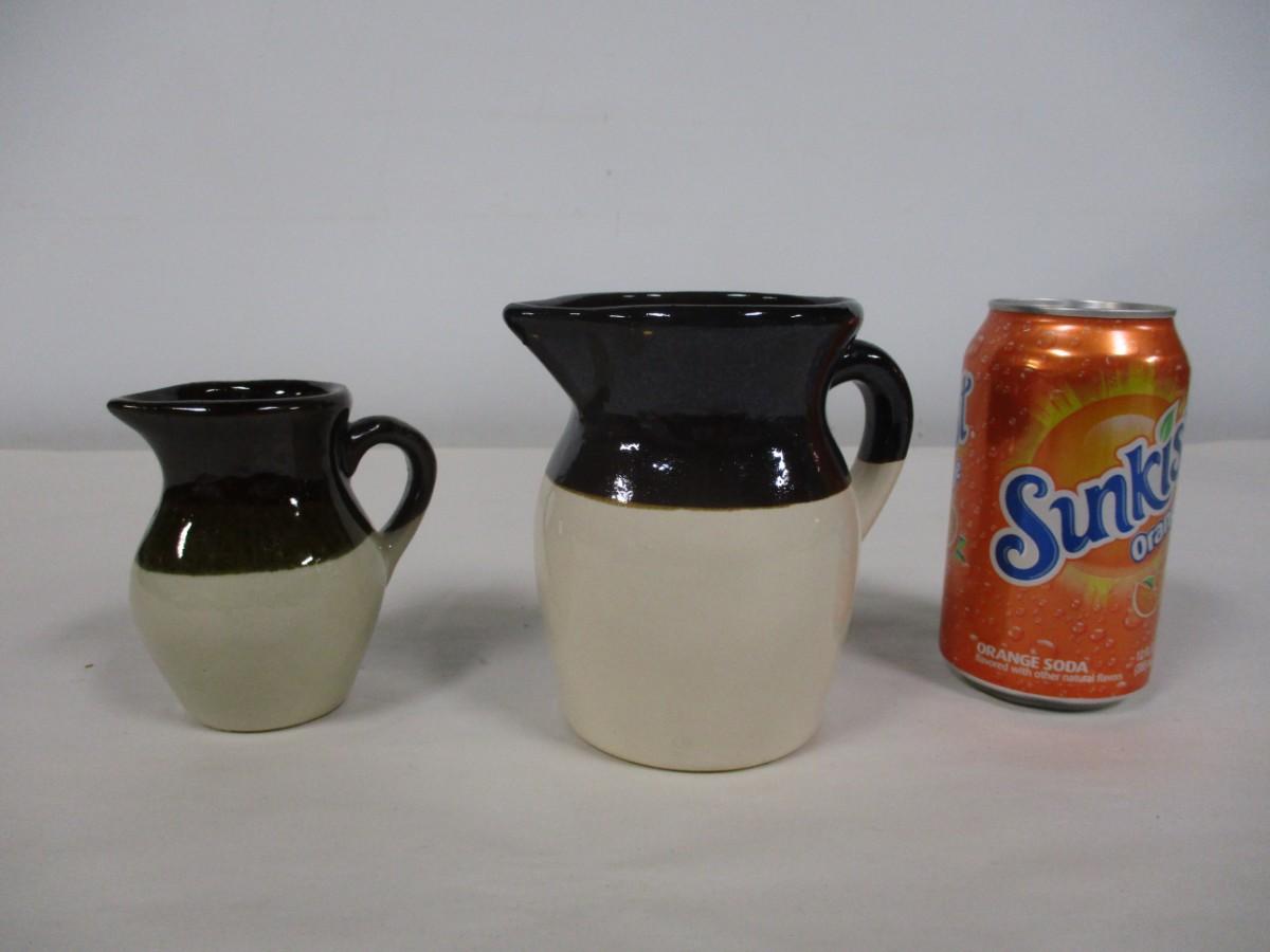 Pair of Pottery Two Tone Small Vintage Pitchers