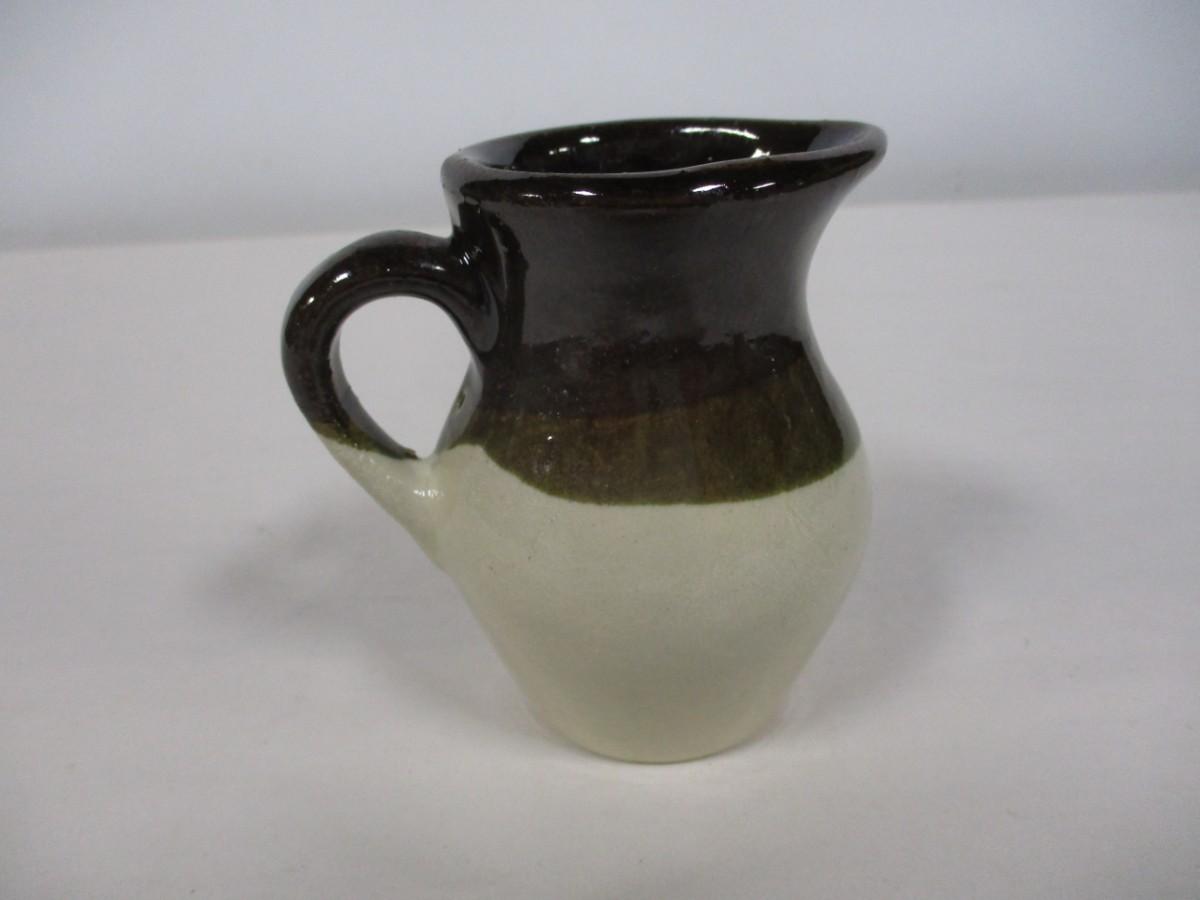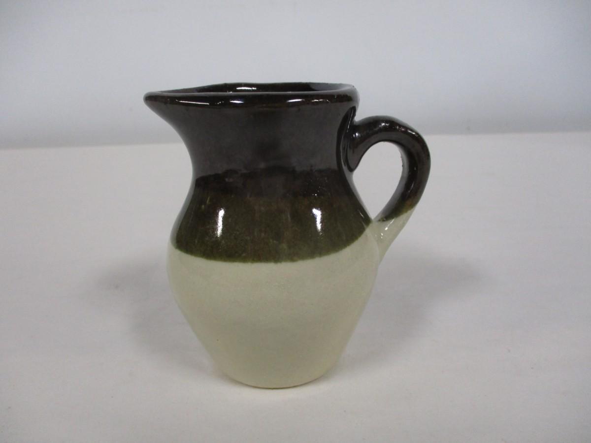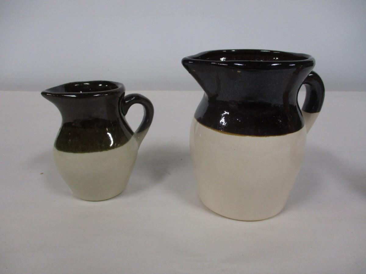 Pair of Pottery Two Tone Small Vintage Pitchers