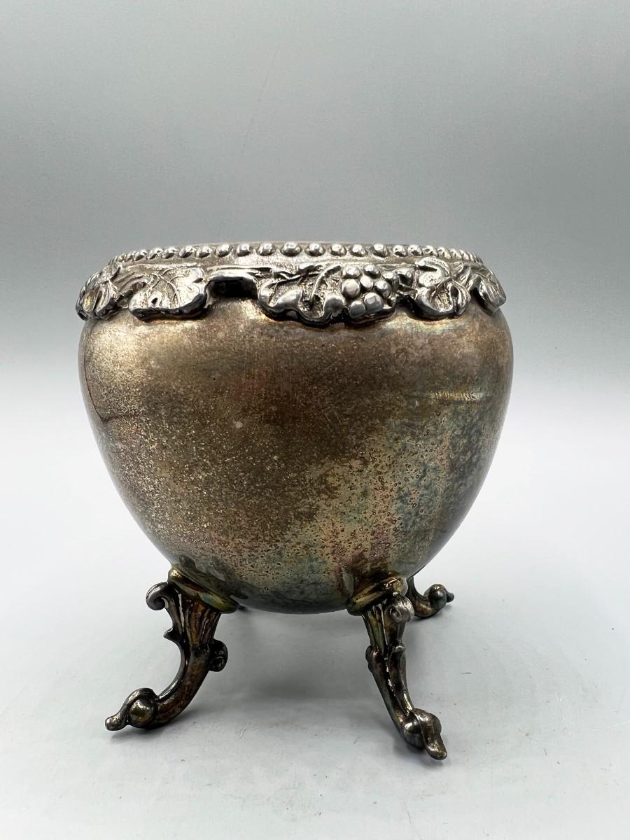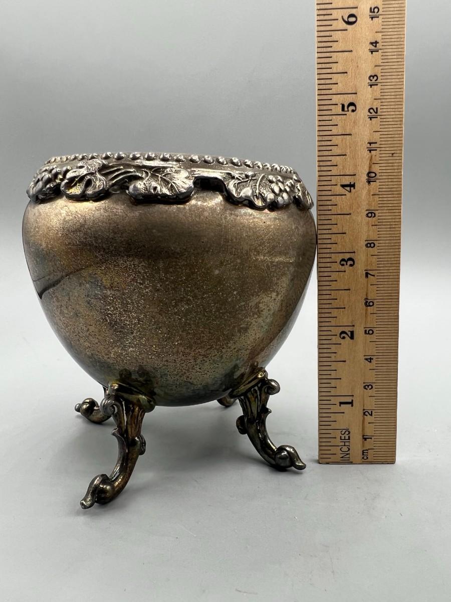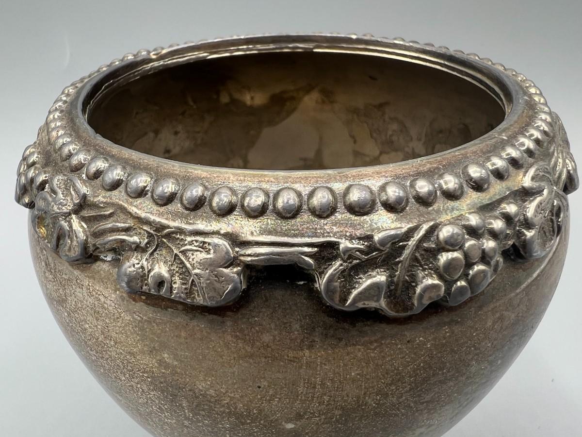 Small Vintage Silver Pewter Grape Trim Home Decor Vessel