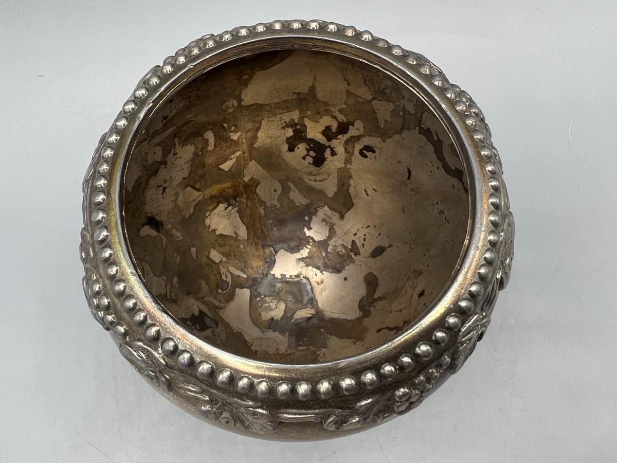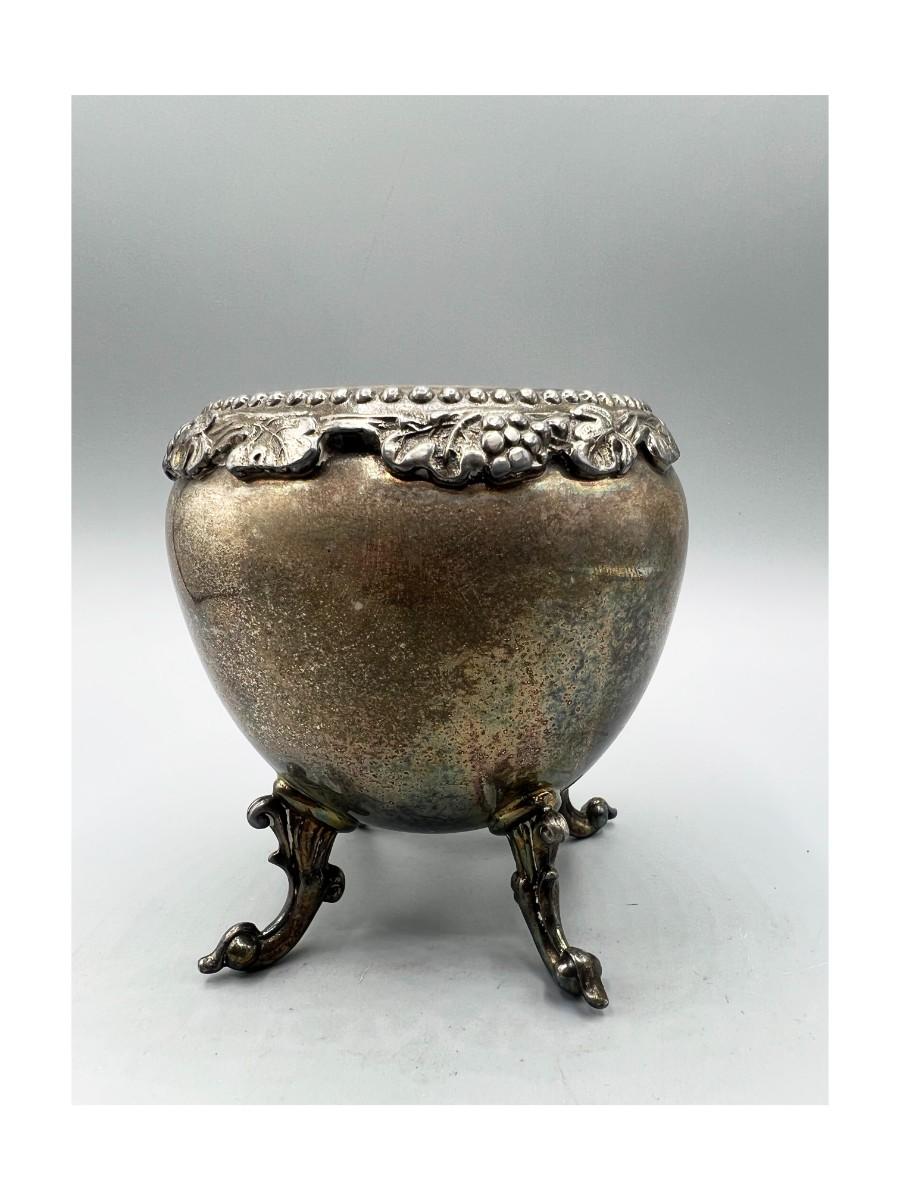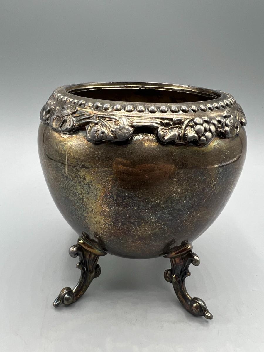Small Vintage Silver Pewter Grape Trim Home Decor Vessel