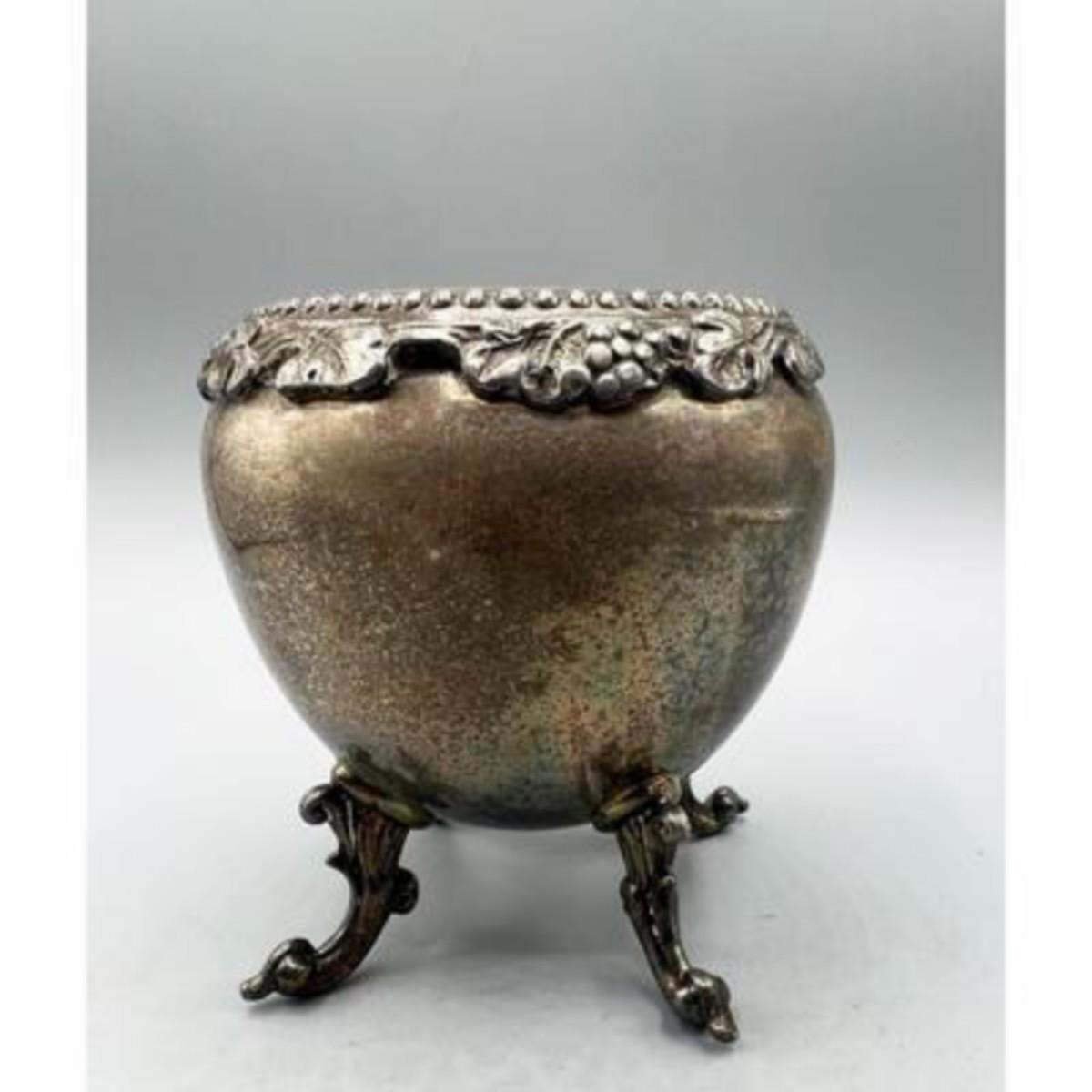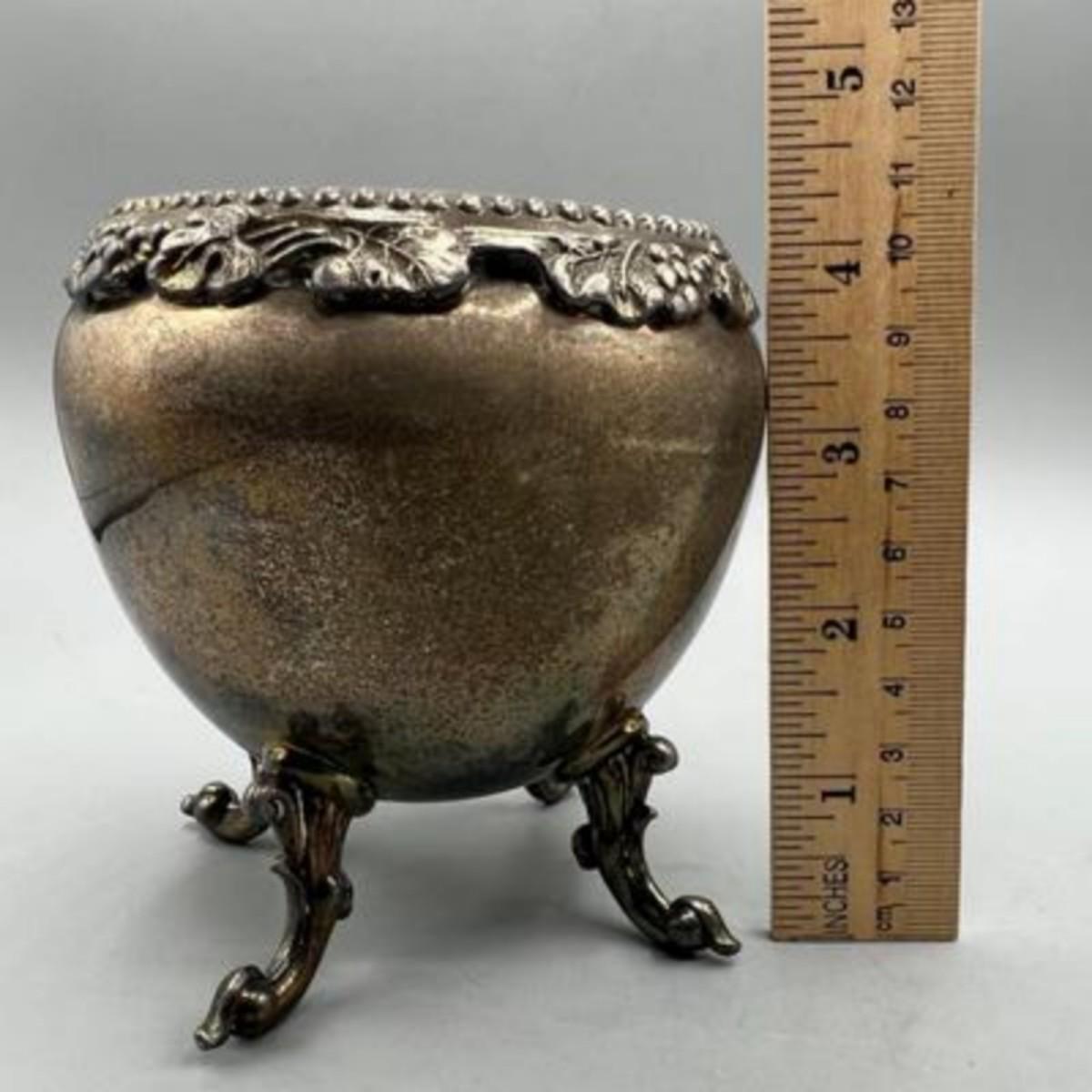 Small Vintage Silver Plate Grape Trim Home Decor Bowl Vessel. There is some light vintage wear, but there is no significant damage and is in overall good displayable and collectible condition. Check pictures for more details and for sizing.
