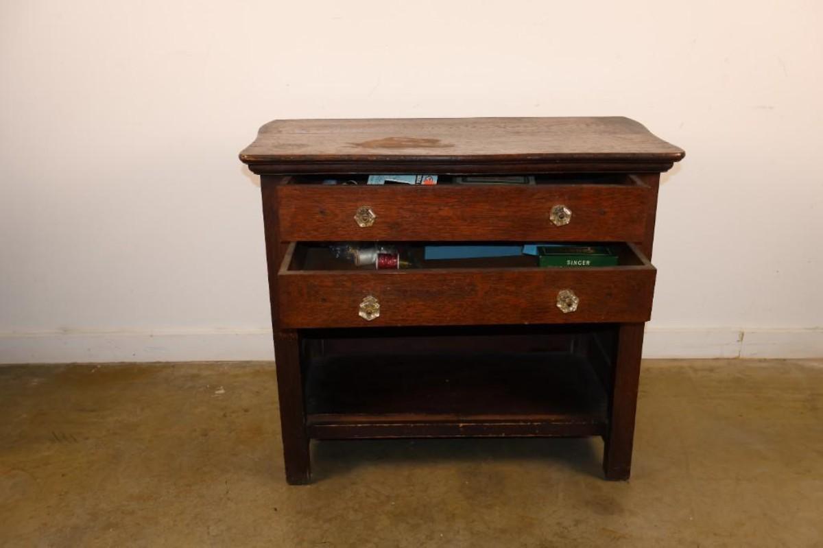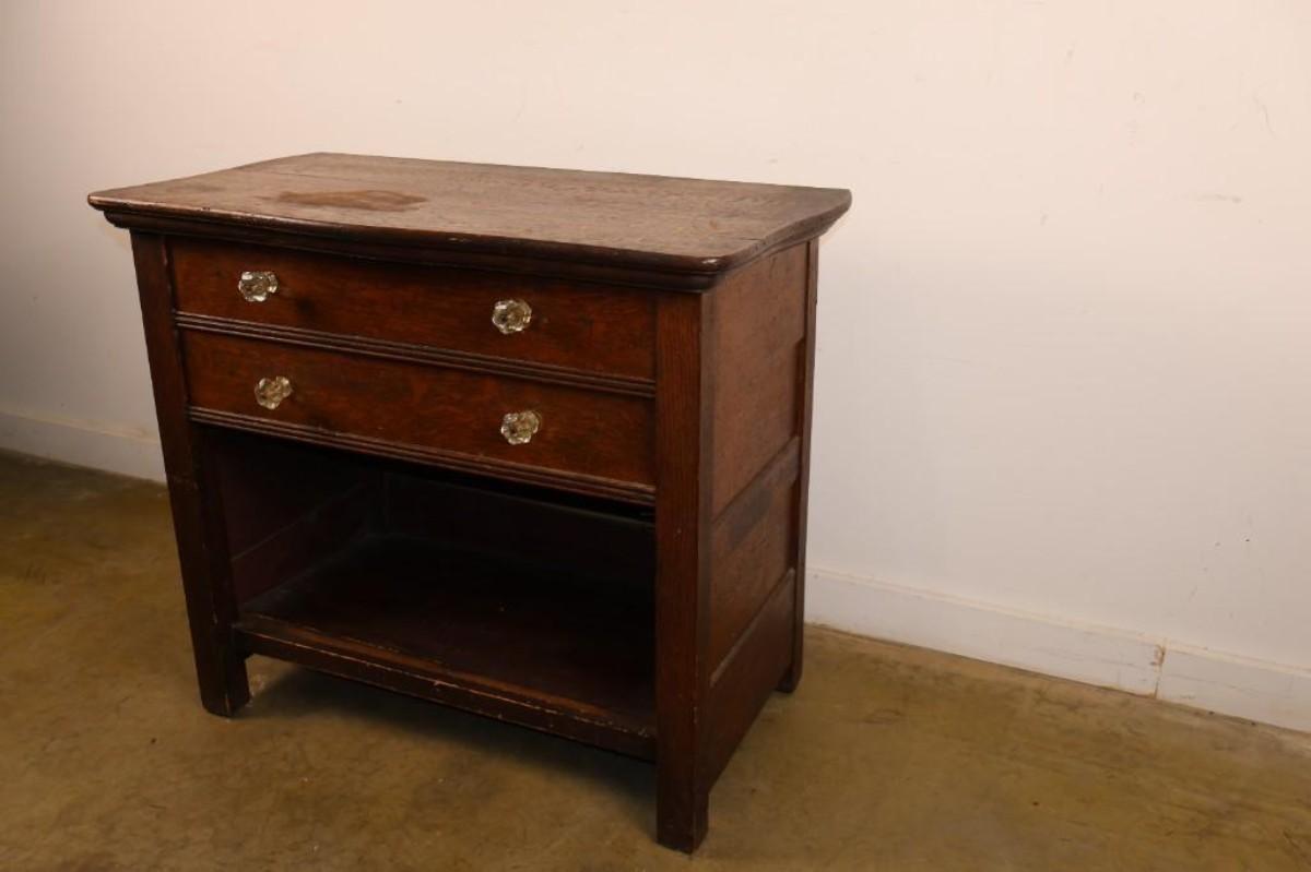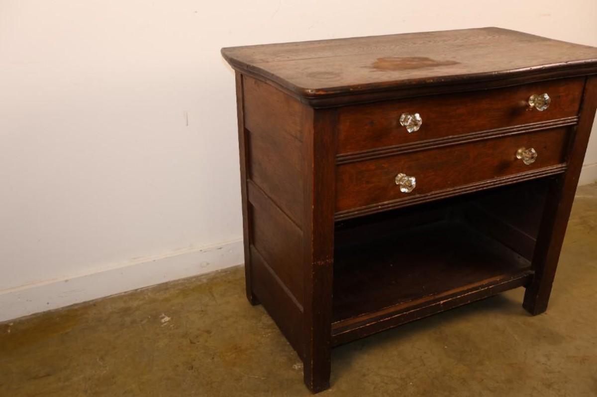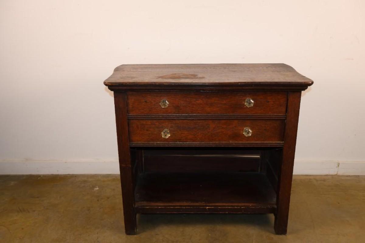 Small Vintage Two Drawer Chest.  Shows wear on the top.