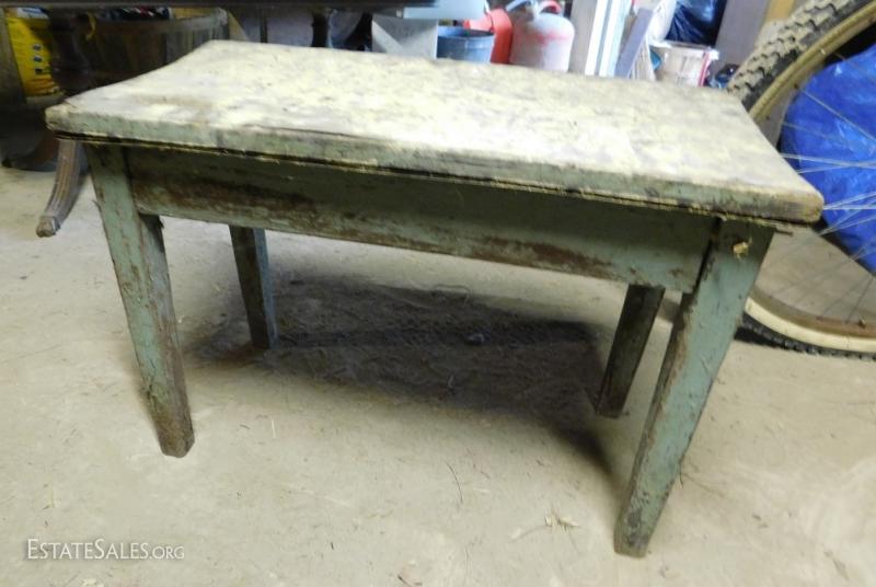 Small Vintage Wood Bench. Has some wear and wood damage.