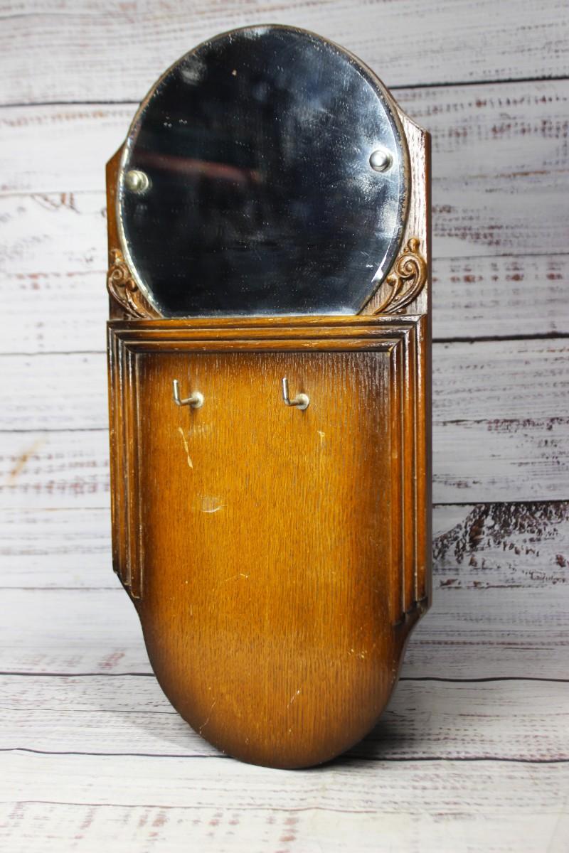 Small Vintage Wooden Hangable Keyring Mirror Plaque