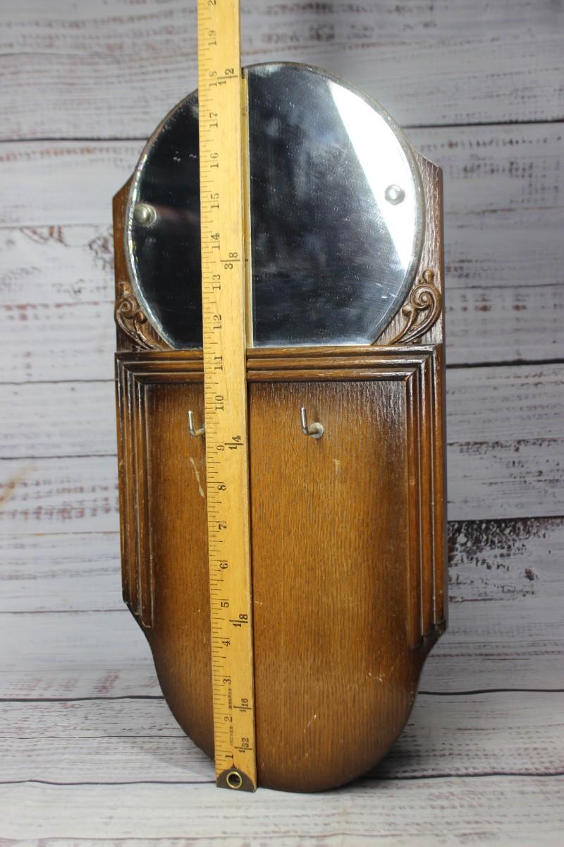 Small Vintage Wooden Hangable Keyring Mirror Plaque, there is some vintage wear to the keyring plaque, but there is no significant damage and is in fair vintage condition. Check pictures for more details and for sizing.