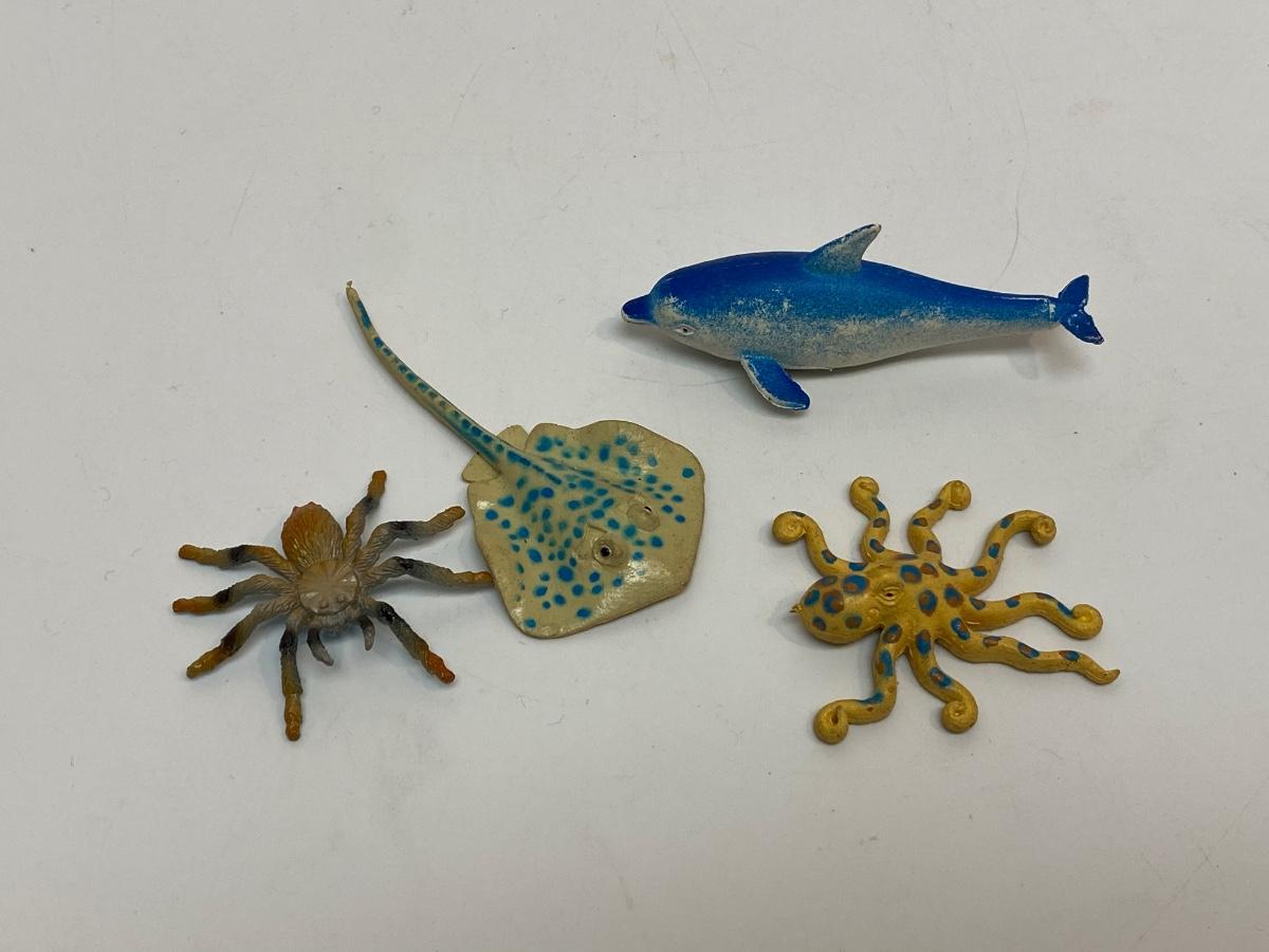Small Vinyl Animal Lot - Spider, Sting Ray, Octopus, and Dolphin.