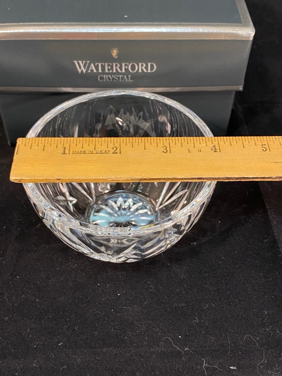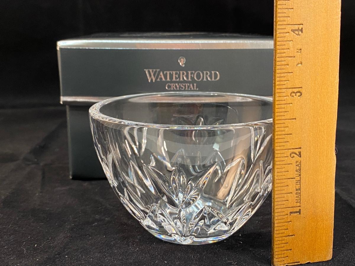 Small Waterford Crystal Tulip Flower Bowl with Box. Marked Waterford with seahorse near bottom edge. Comes in original box. About 4" diameter and 2.5" tall.
