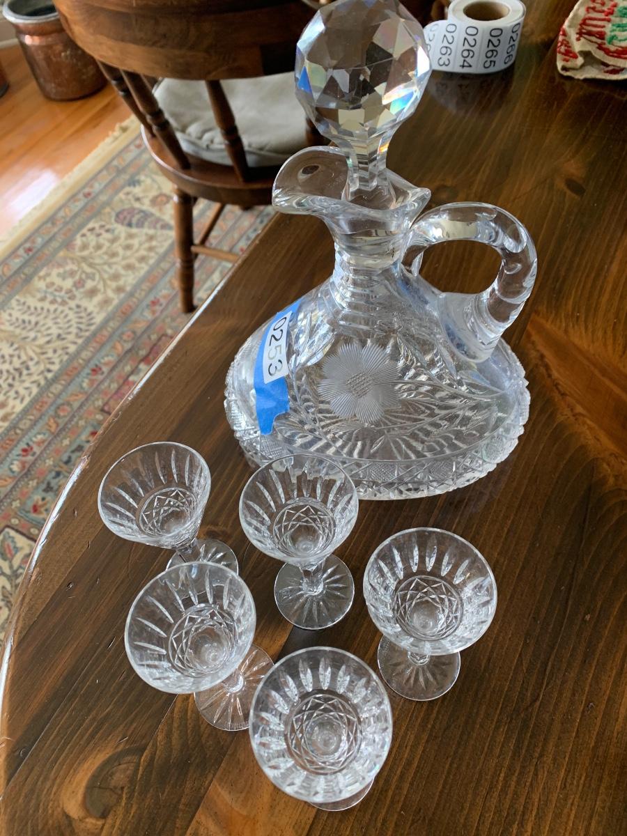 Small Wedgwood 4” Brady Stemware & Cut Glass Decanter