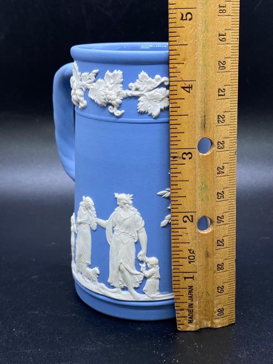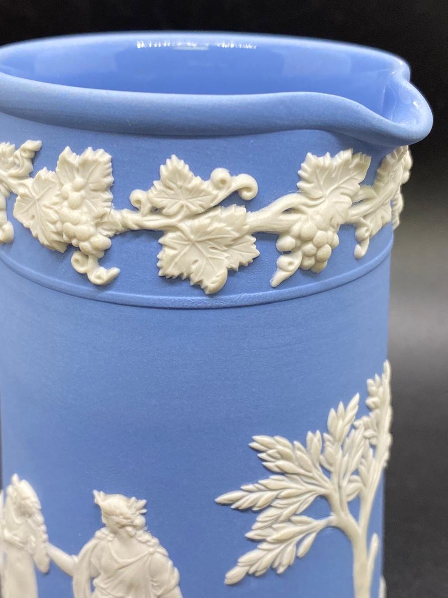 Small Wedgwood Jasperware Cream Pitcher. Grapevine edge detail, twisted handle. Beautiful detail and design all the way around. About 4.5" size.