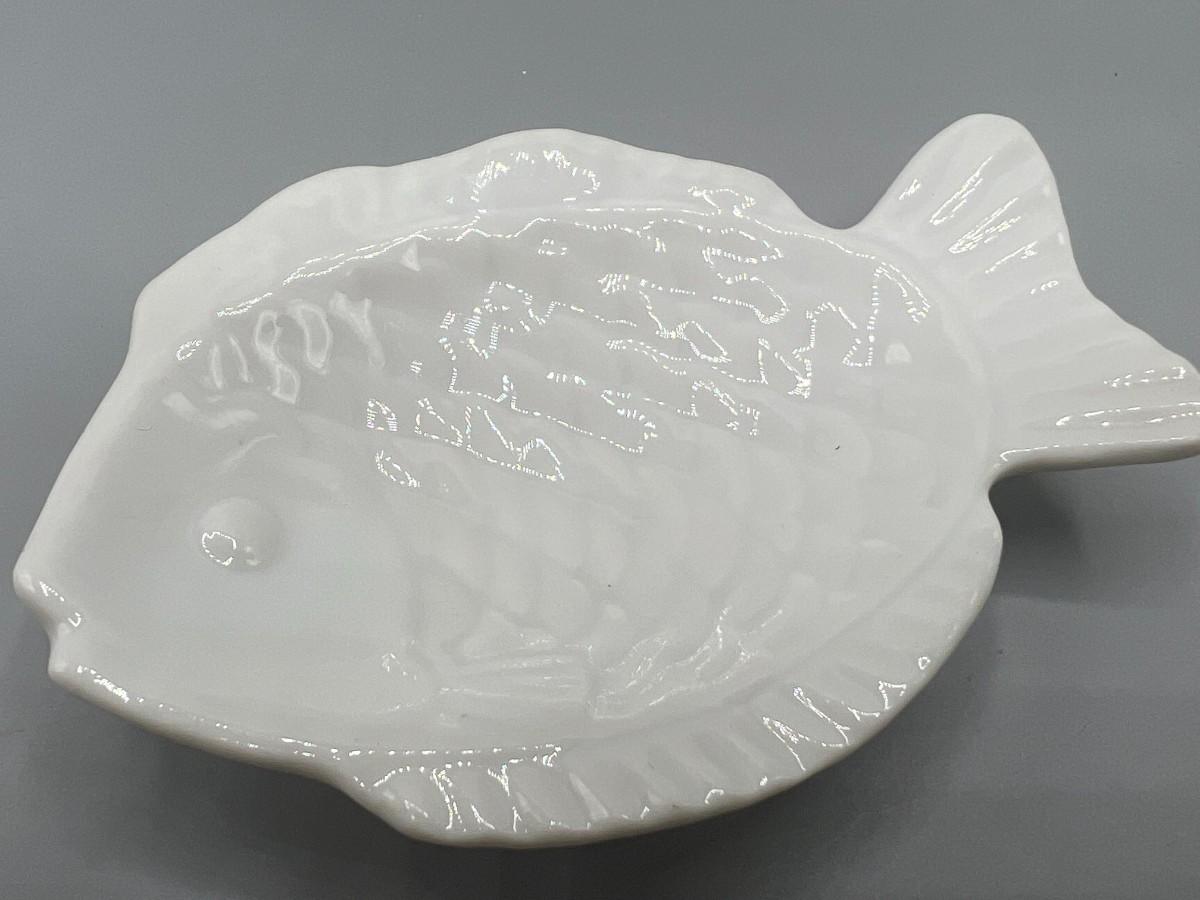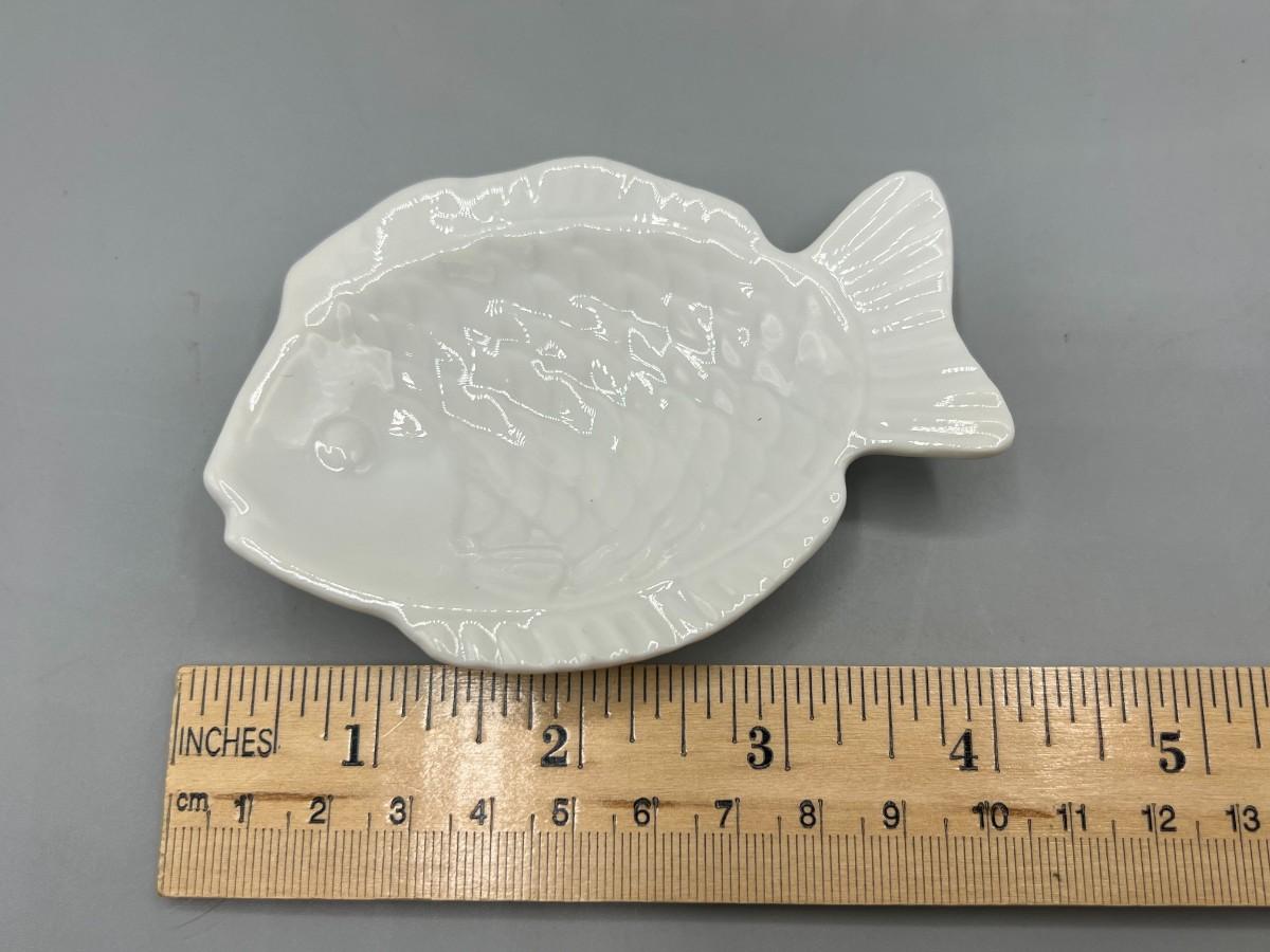 Small White Ceramic Nautical Fish Trinket Jewelry Dish, there is no significant cracks or chips to the piece and is in good displayable condition. Check pictures for more details and for sizing.