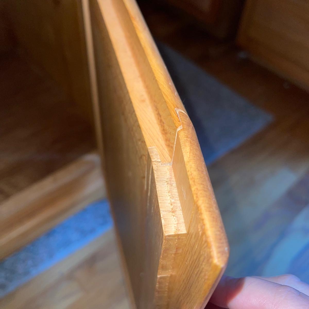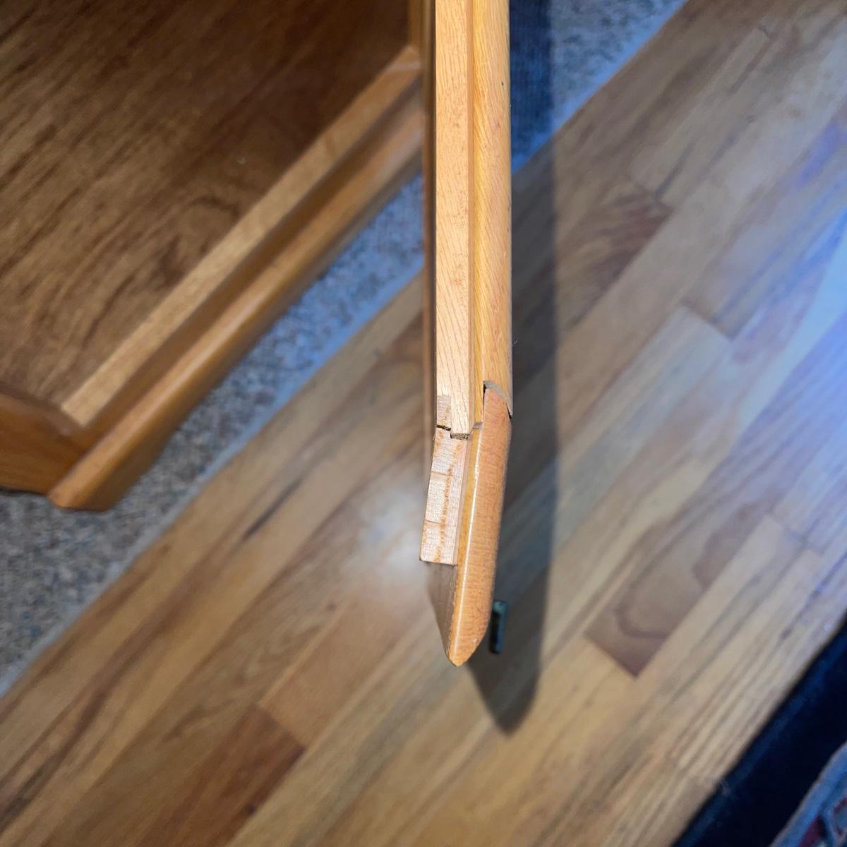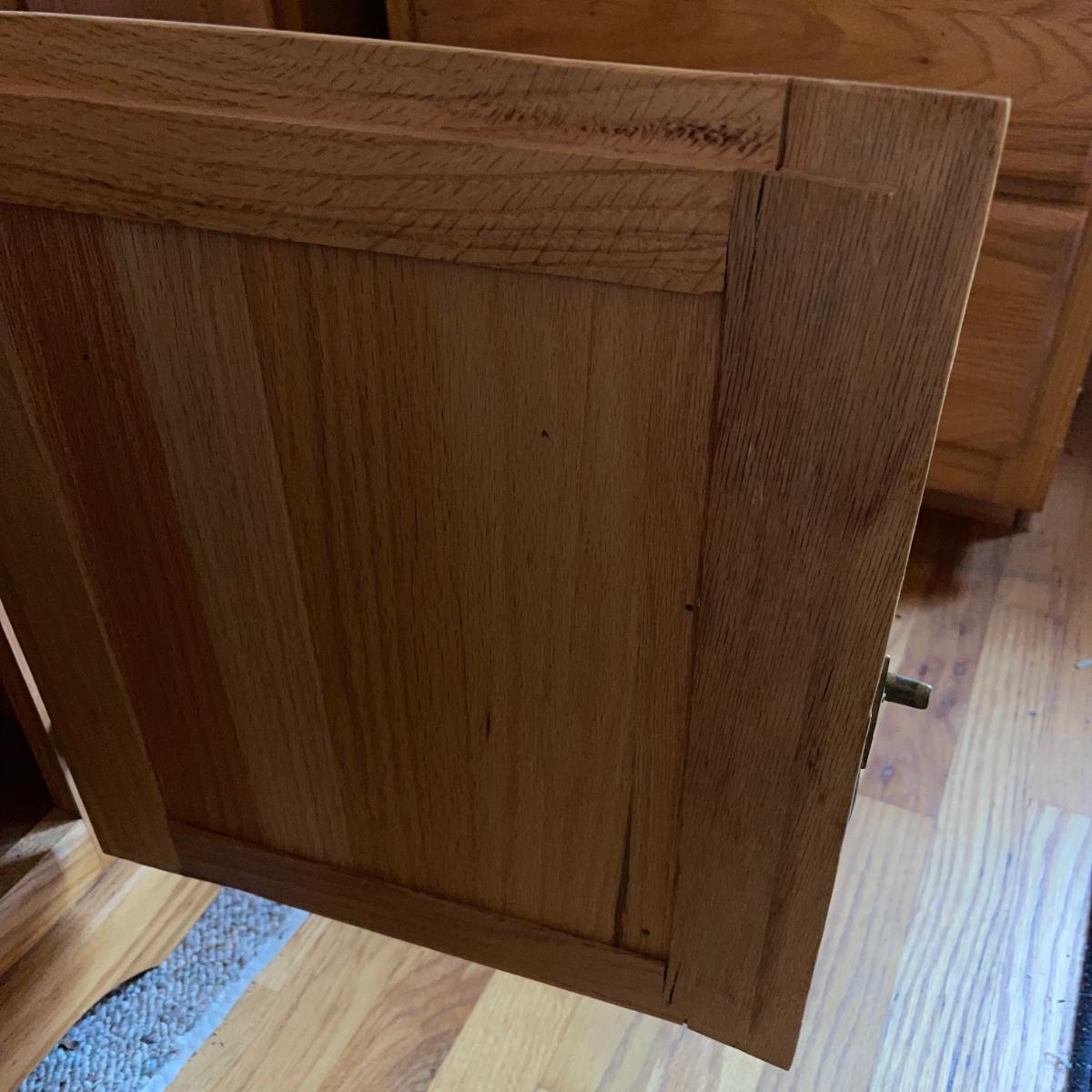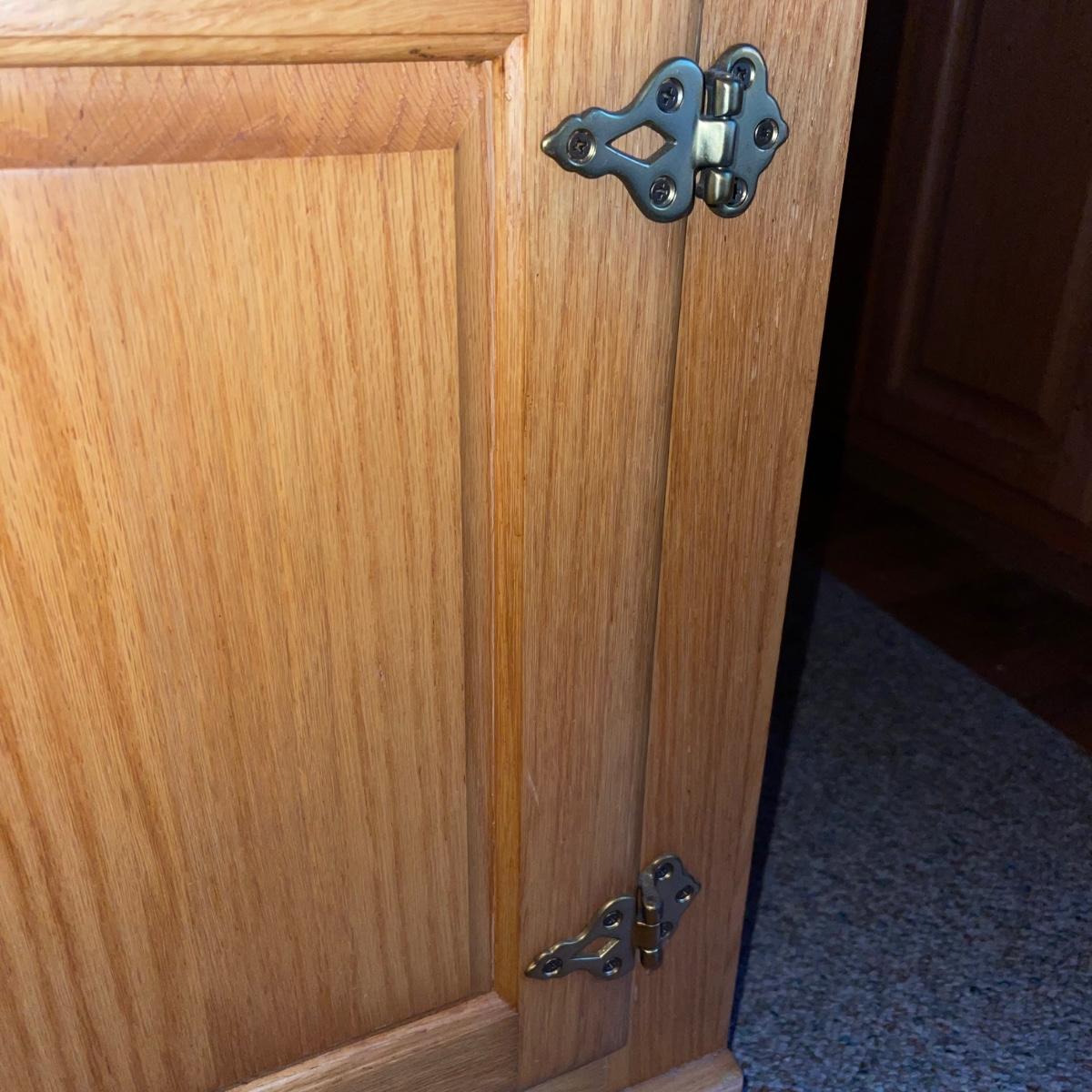 Measuring 22” x 20” x 26”, this White Clad cupboard is wooden and not very heavy. The door is cracked in one place and can be easily glued back into place; door starts closes and clasps. The back says “Furn Village Natural”. Local pickup only.