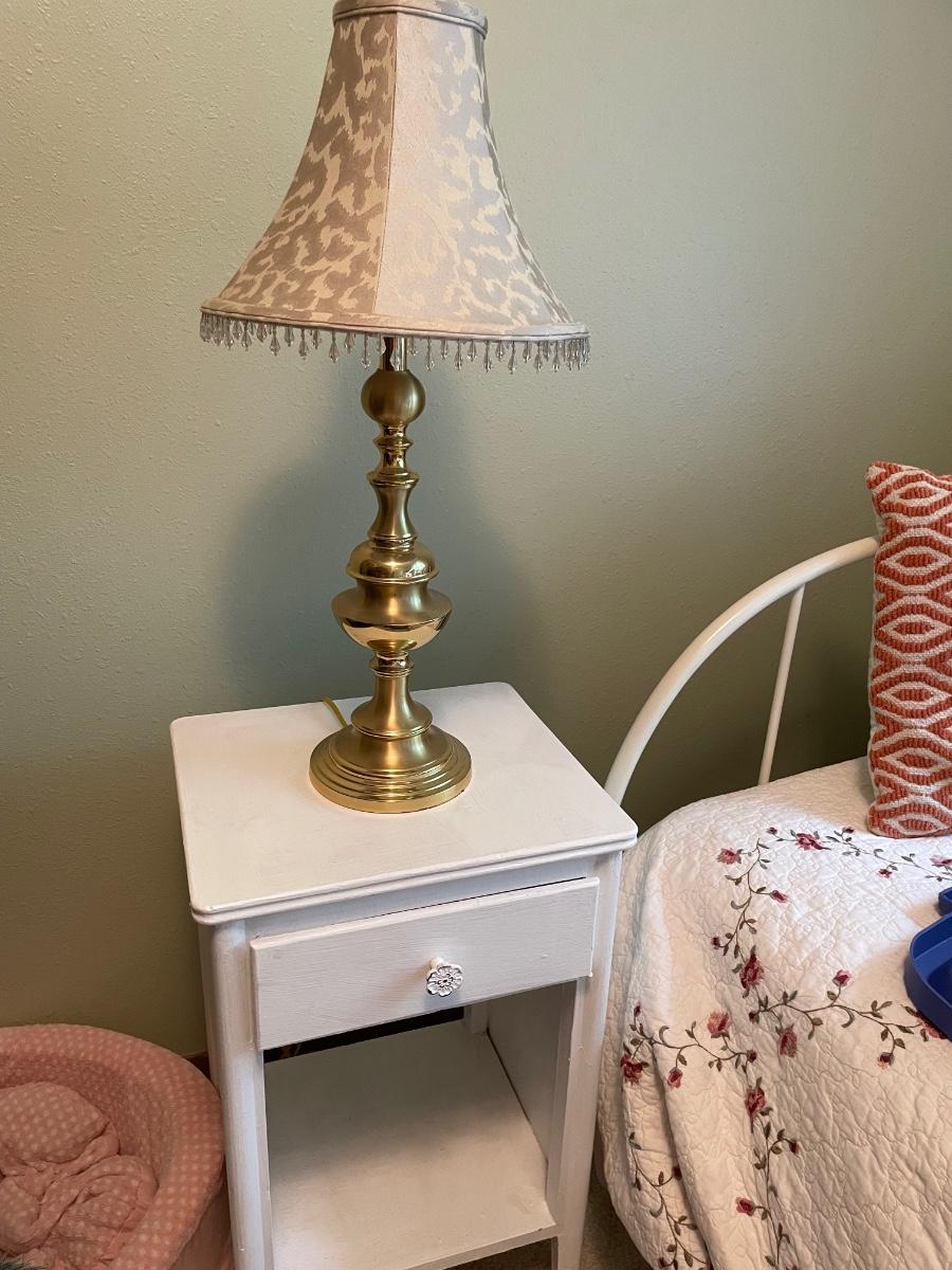 Small white nightstand and lamp