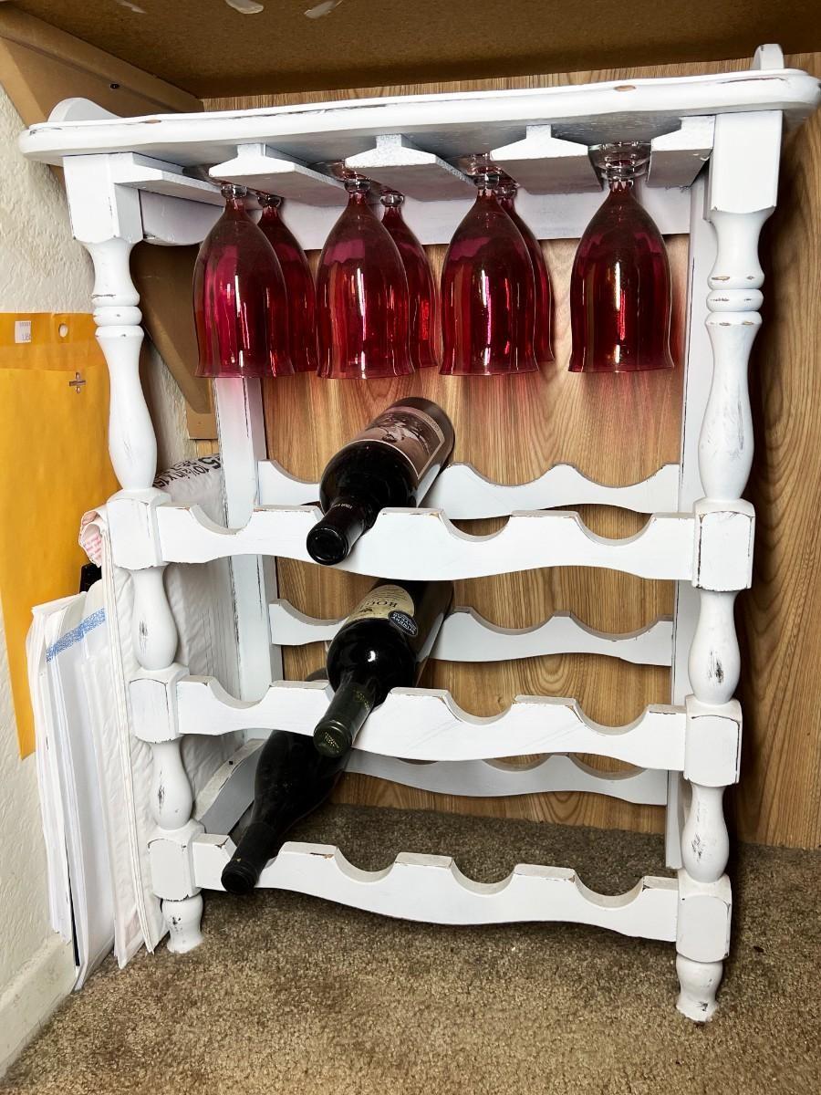 Small White Painted Wood Wine Rack with Glass Storage - LOCAL PICK UP IN BREA - READ DESCRIPTION