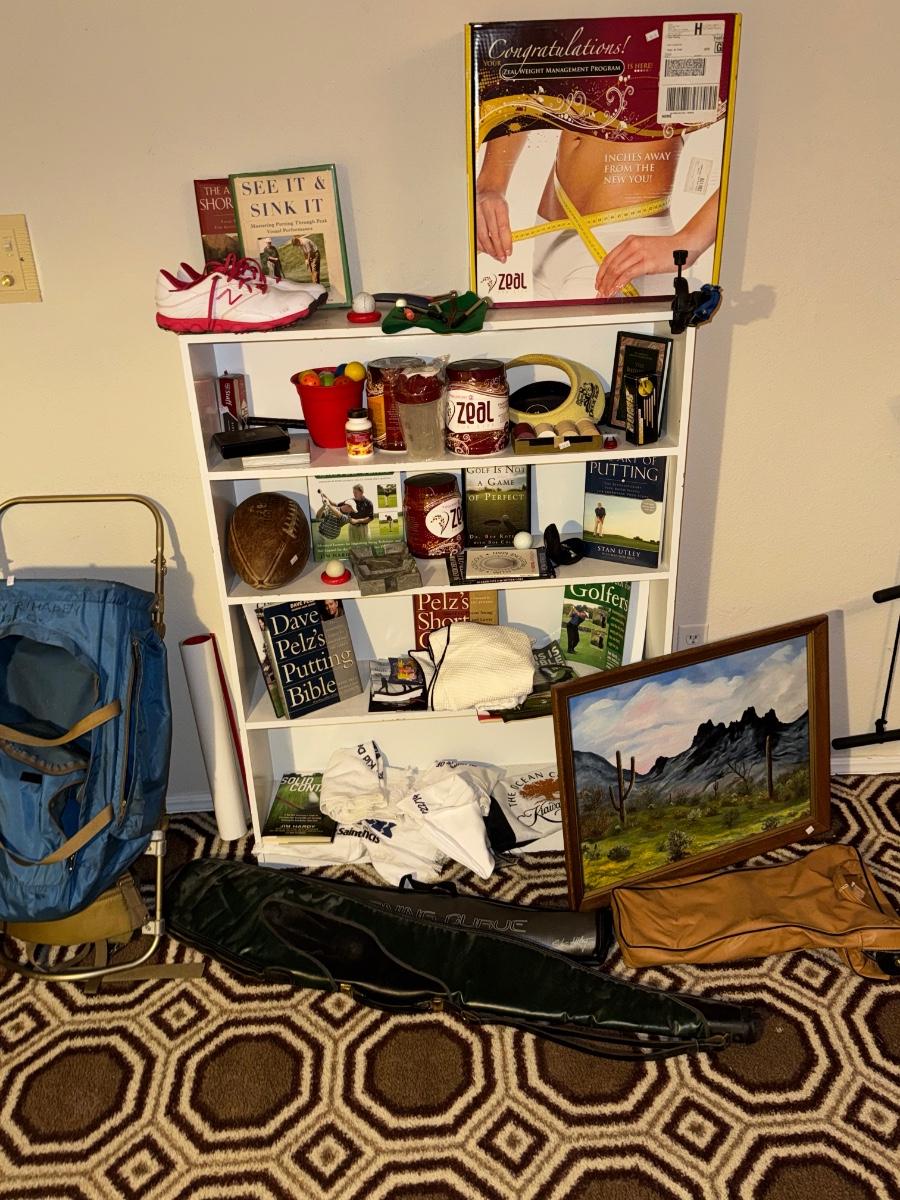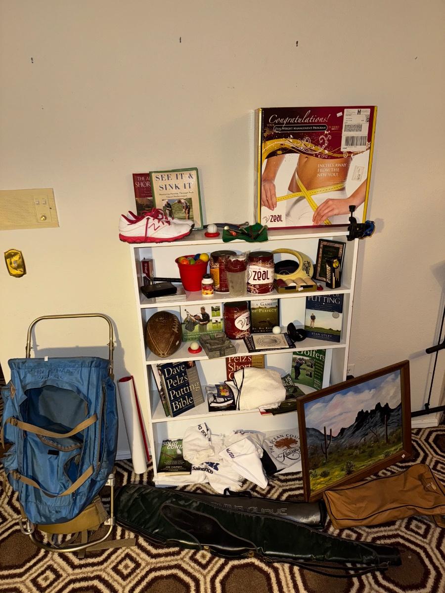 Small white shelf and all contents