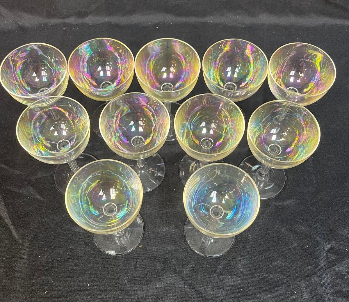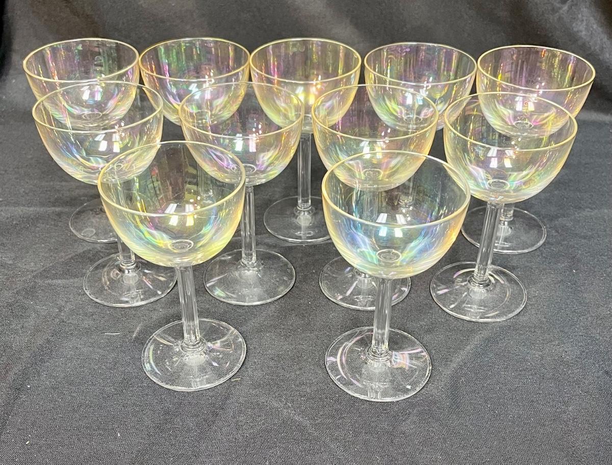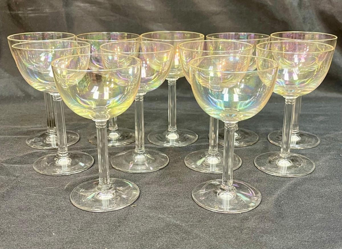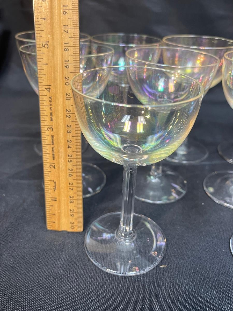 Vintage Retro Fostoria Firelight Iridescent Small Goblet Wine Drink Glasses Stemware
