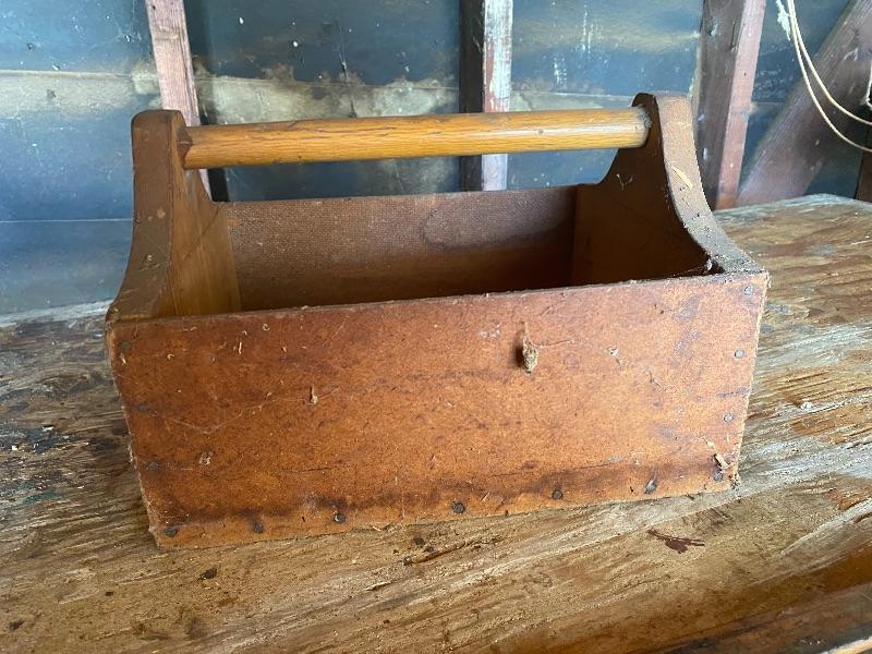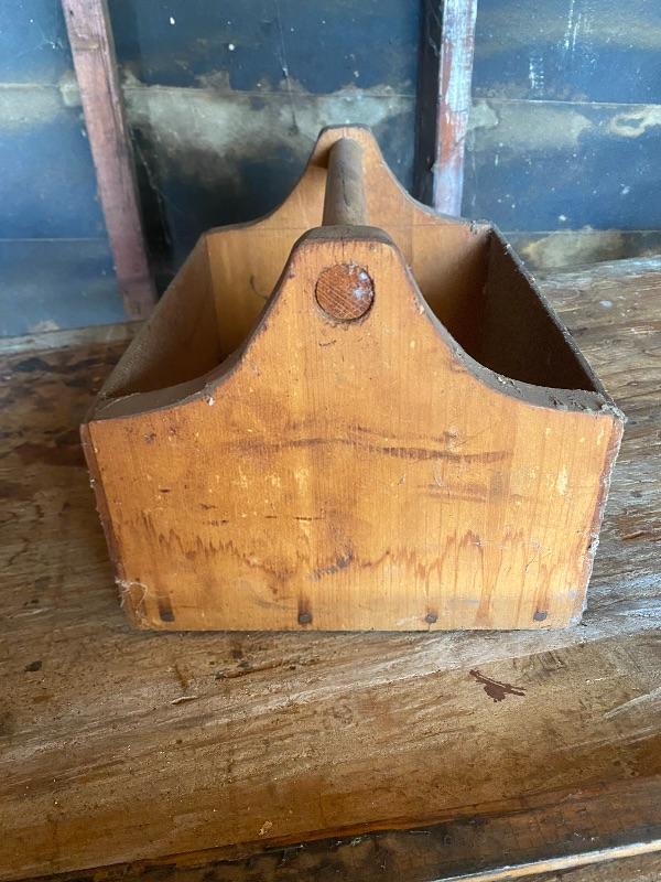 Small wood carpenters tool caddy. 12" size. Used condition.