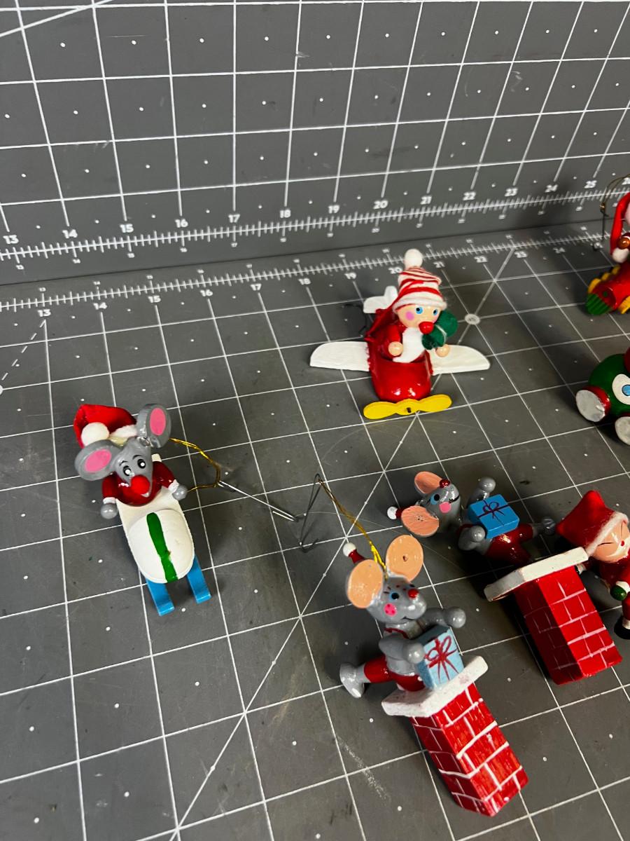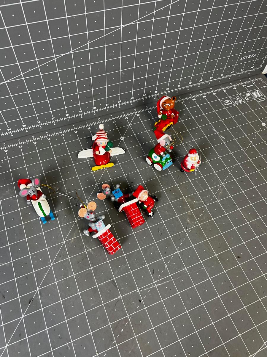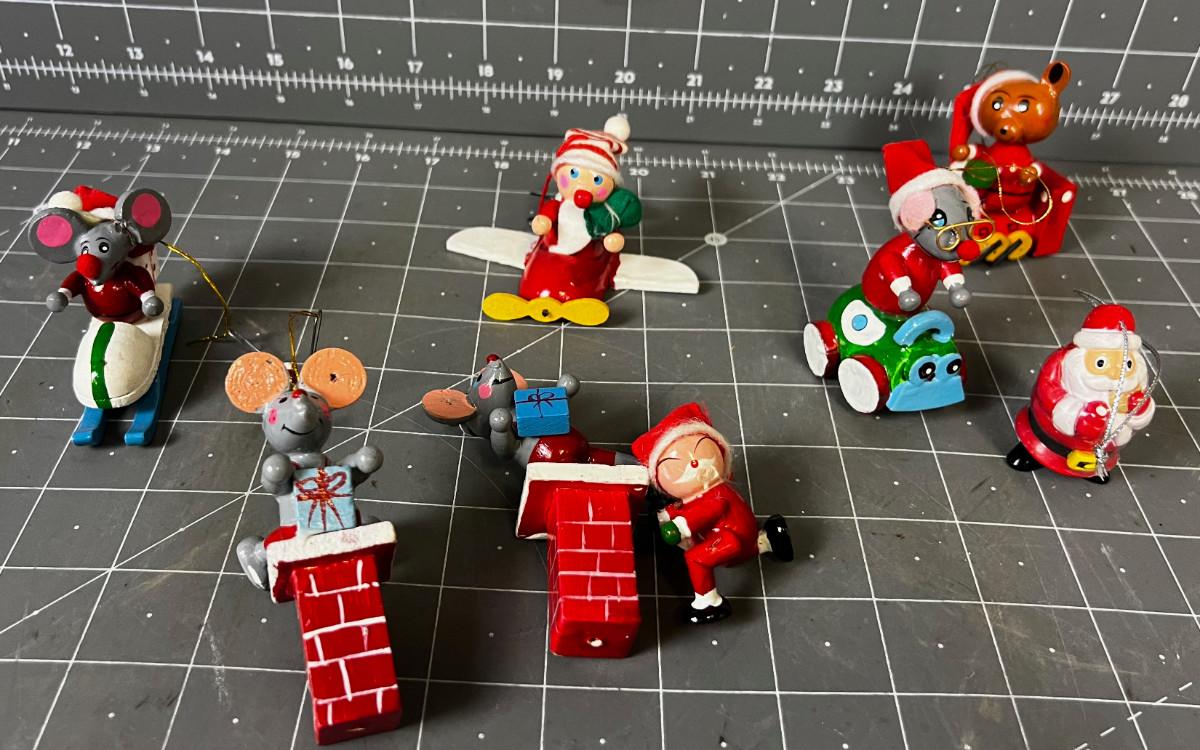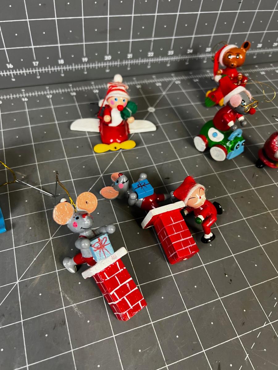 Small Wood Christmas Ornaments Mice and Santa