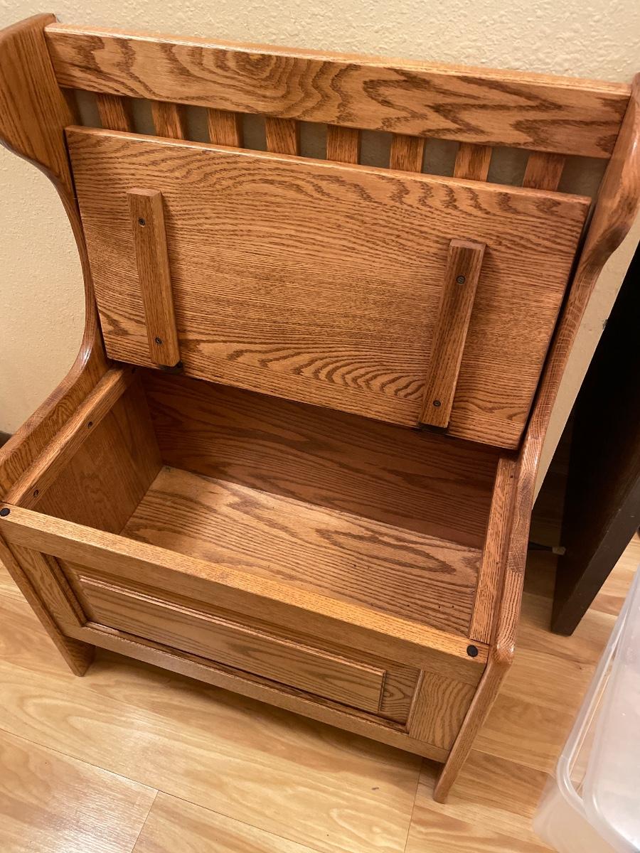 Small wood entry bench with storage