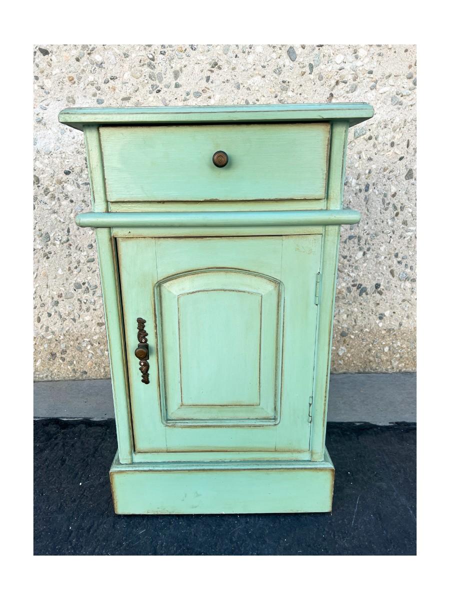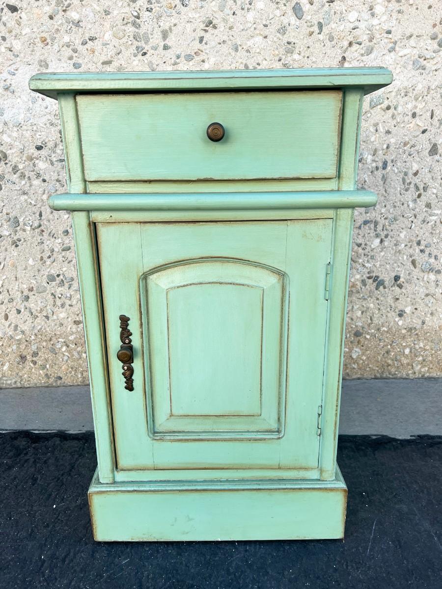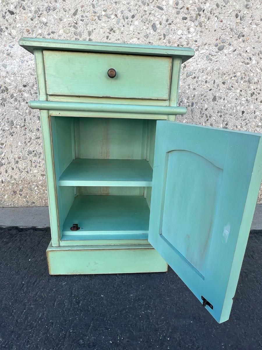 Small Wood Vintage Style Turquoise Nightstand Cabinet
