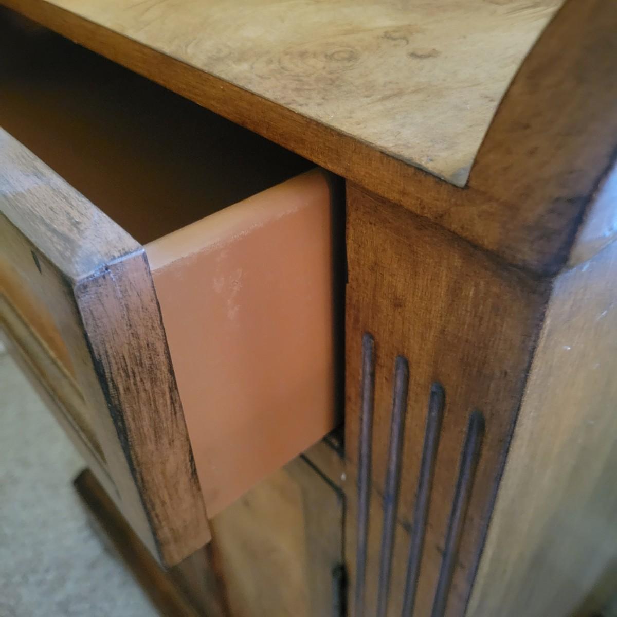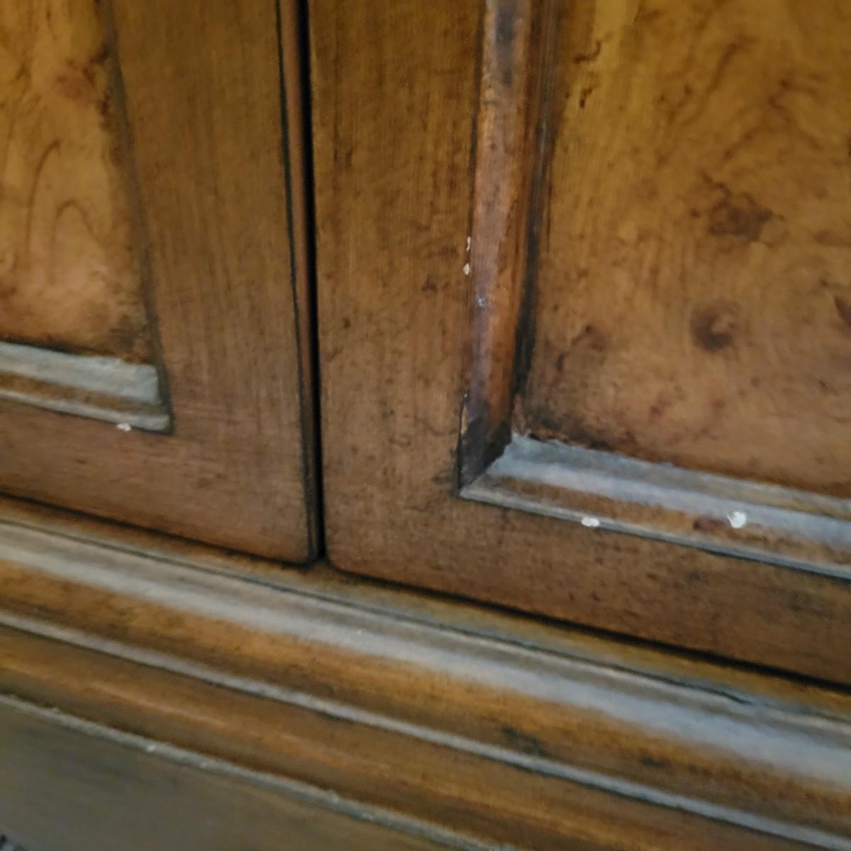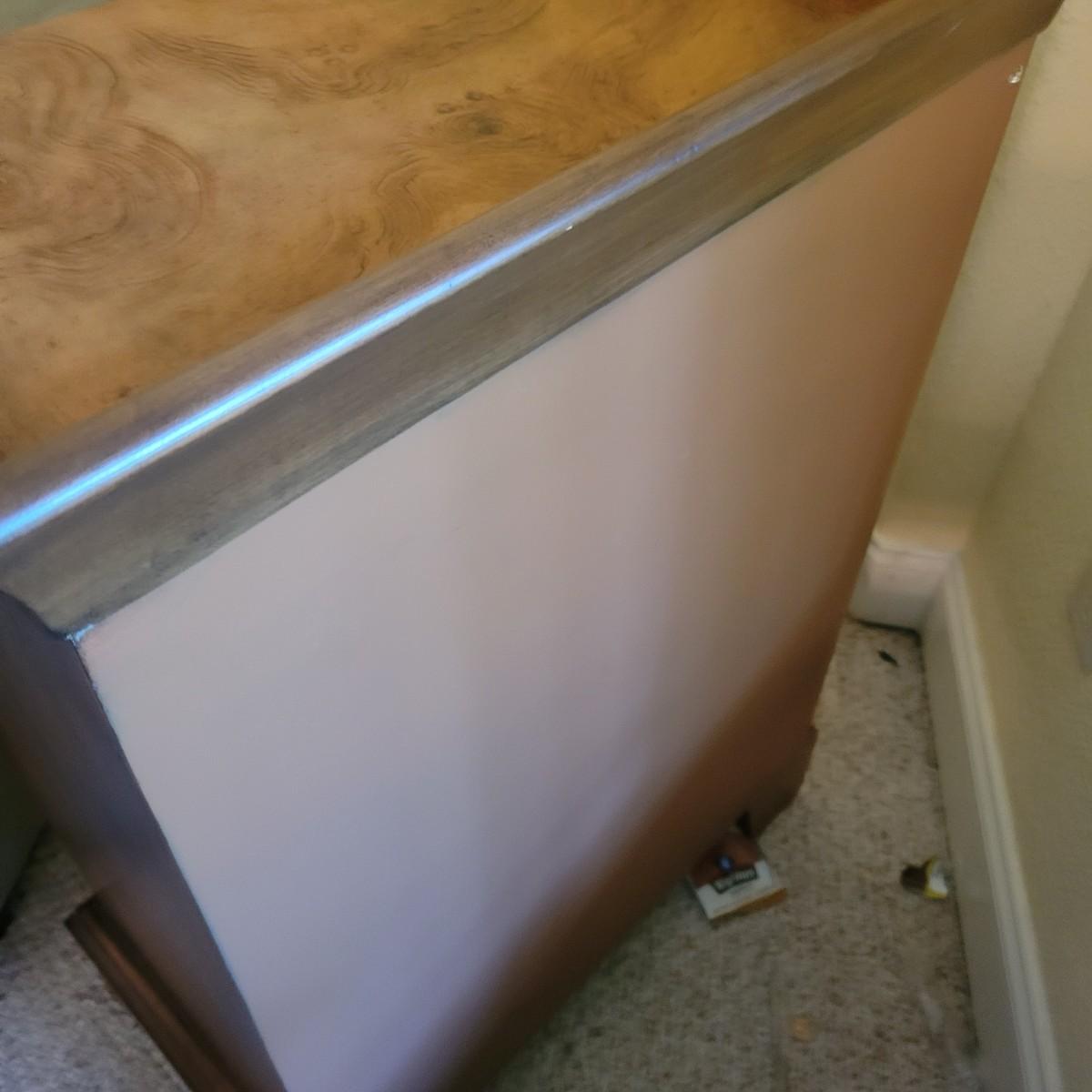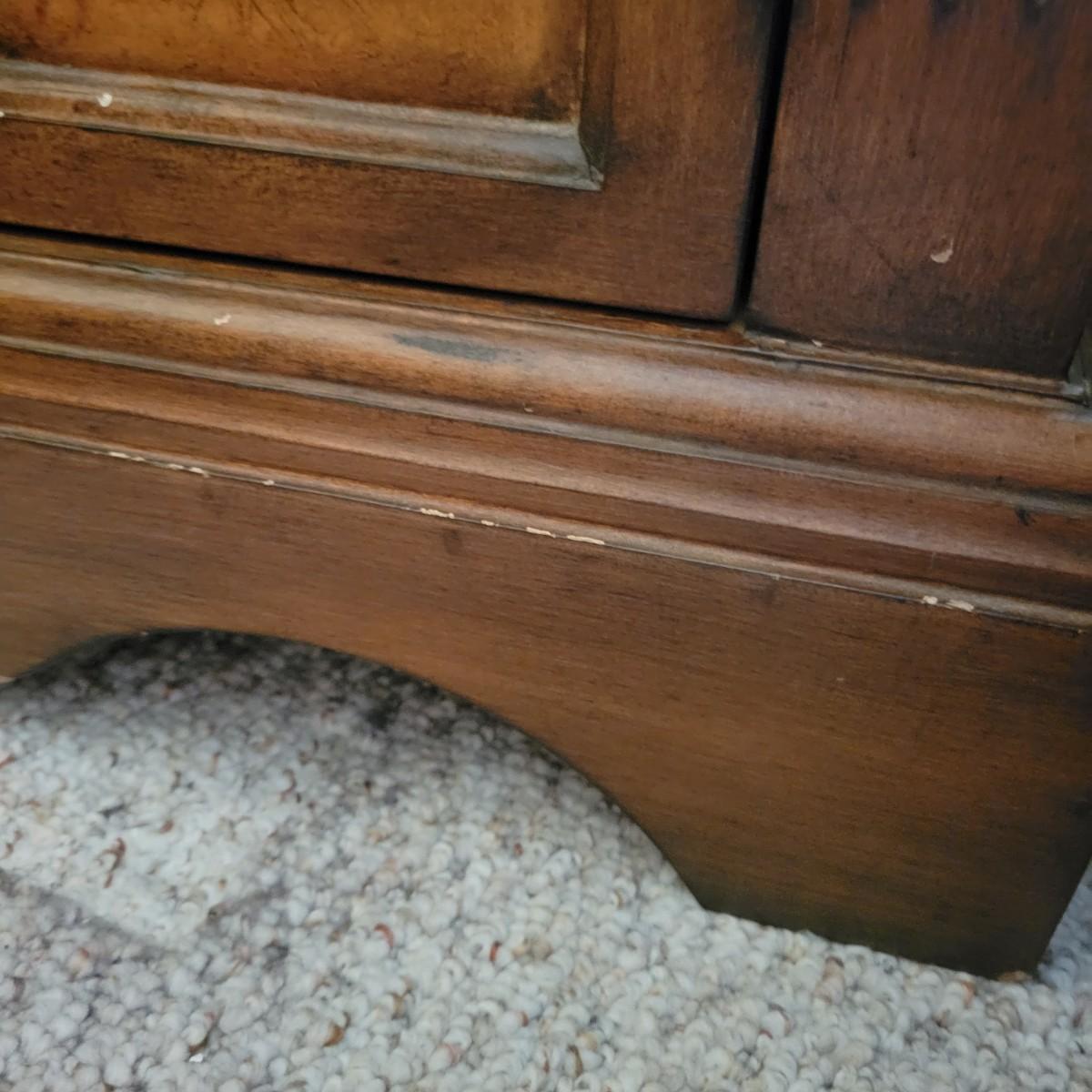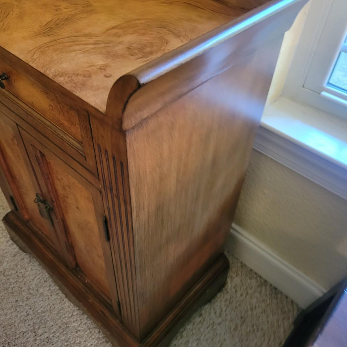 A small wooden cabinet that has one drawer, a two doored cabinet space and measures approximately 26" x 15.5" x 36"H. Local pickup only