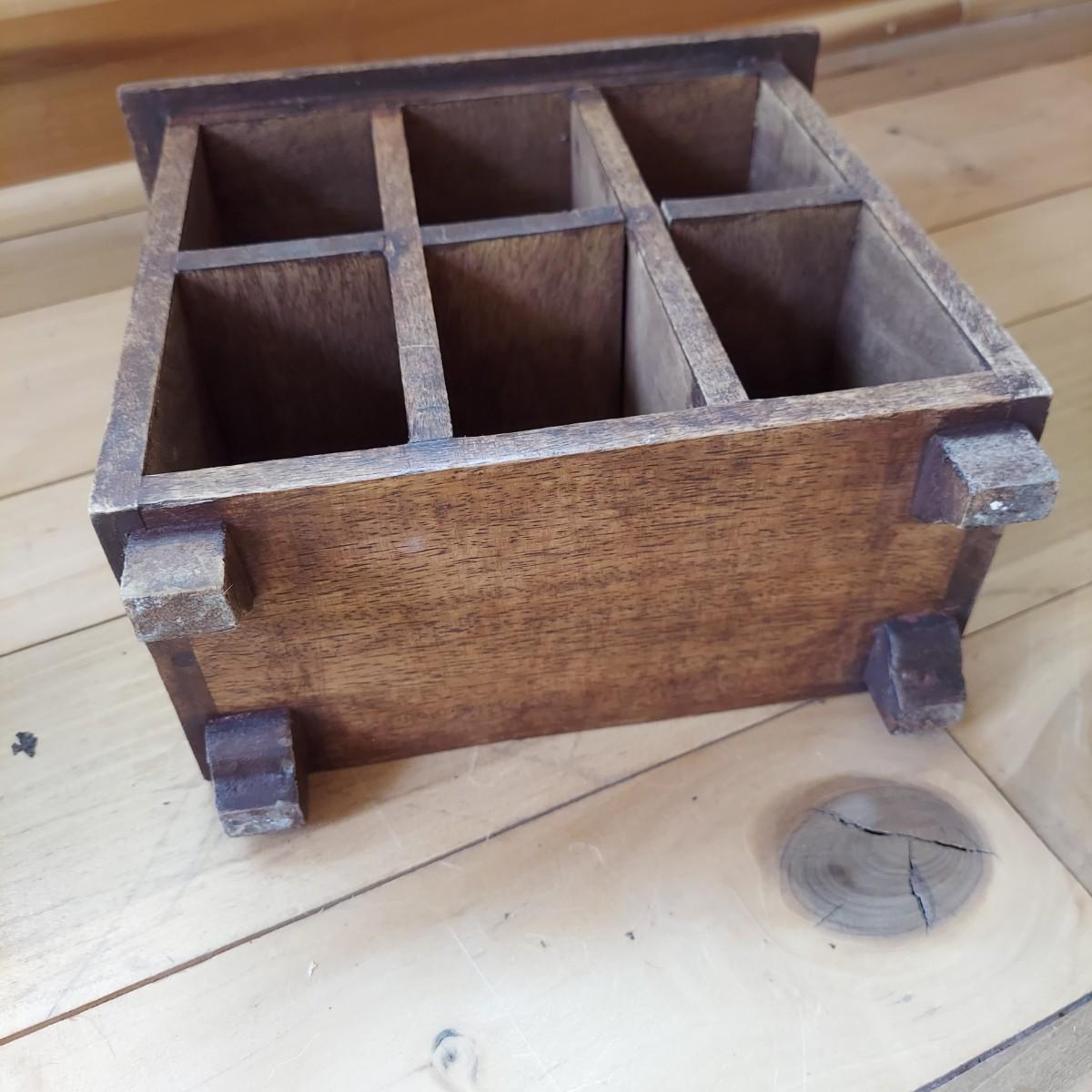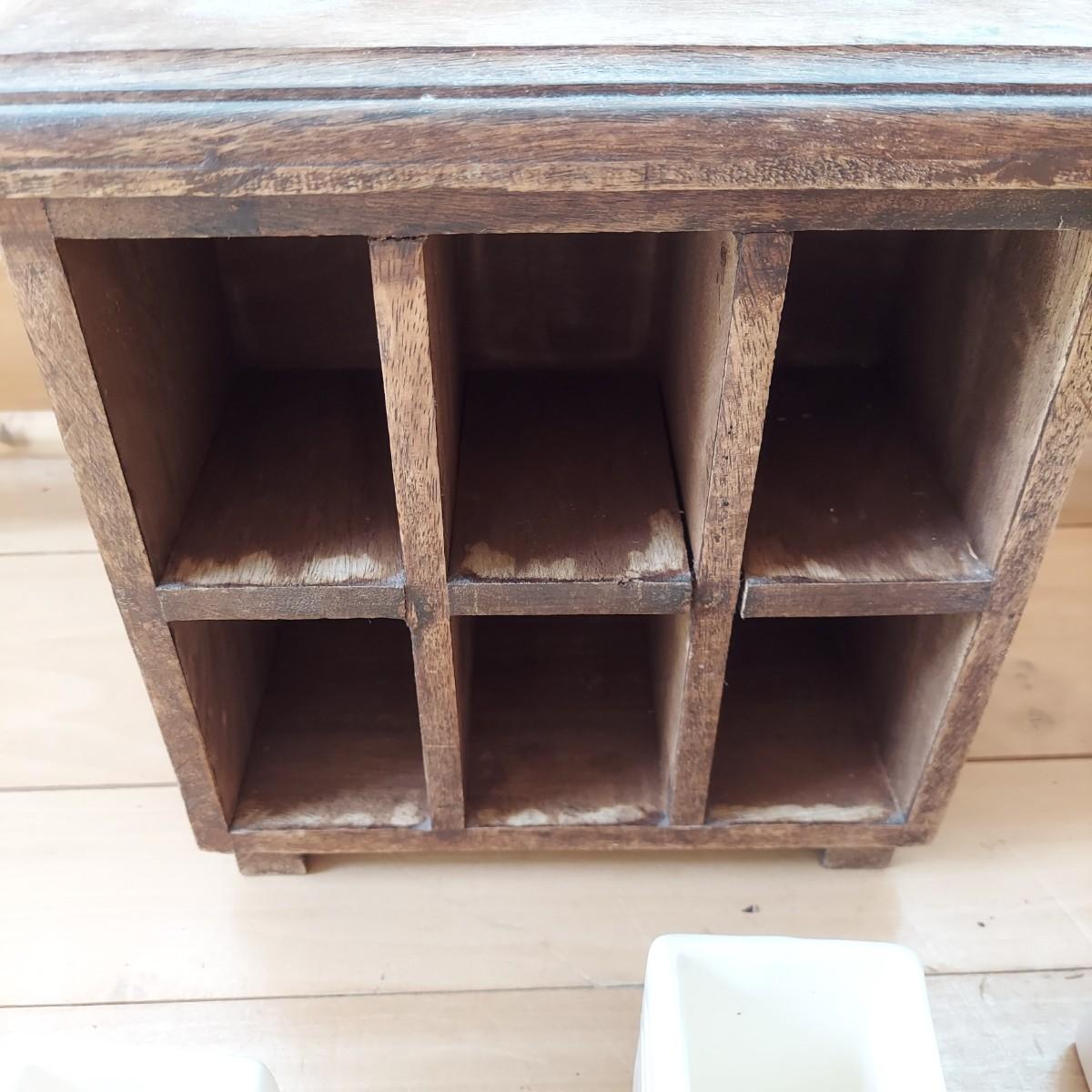 Small wooden Mexican folk art style shelf. Made for a tea or spice caddy but the possibilities are endless. Measures approximately 10" x 5" x 10"H. Shipping available.