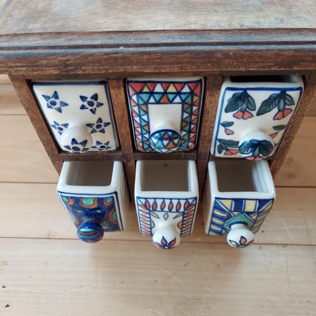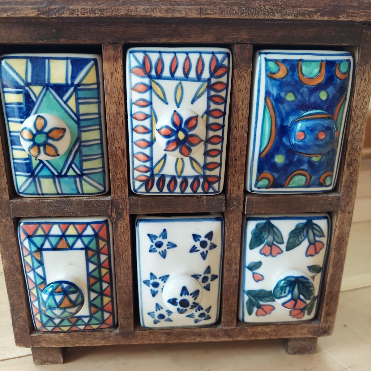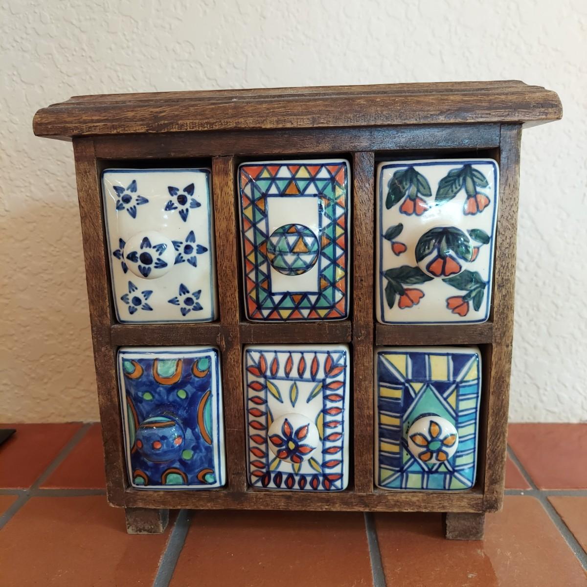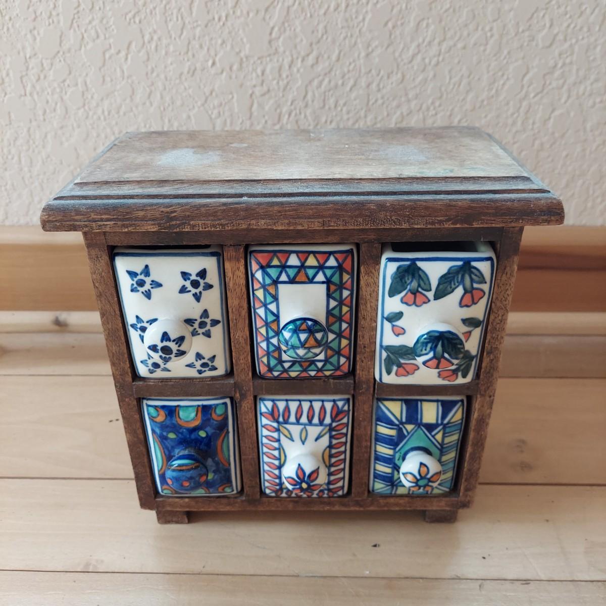 Small Wood Chest with Ceramic Drawers (LR-BBL)