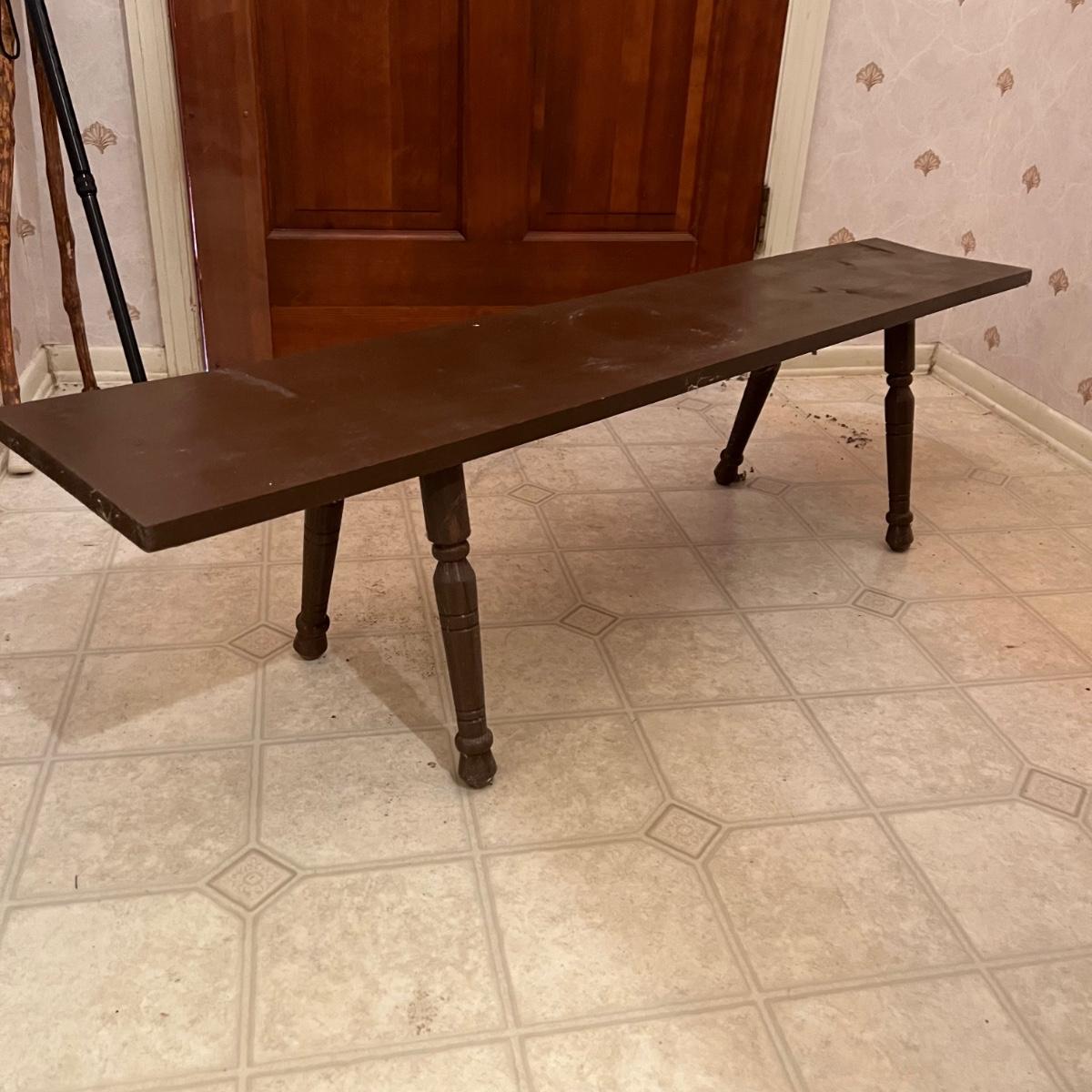 Small wooden painted shoe bench. The bench measures 48” x 9” x 12.5”H.