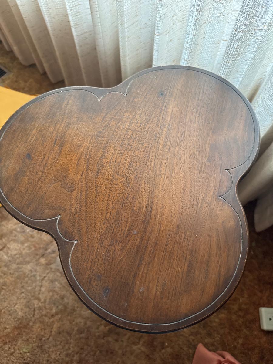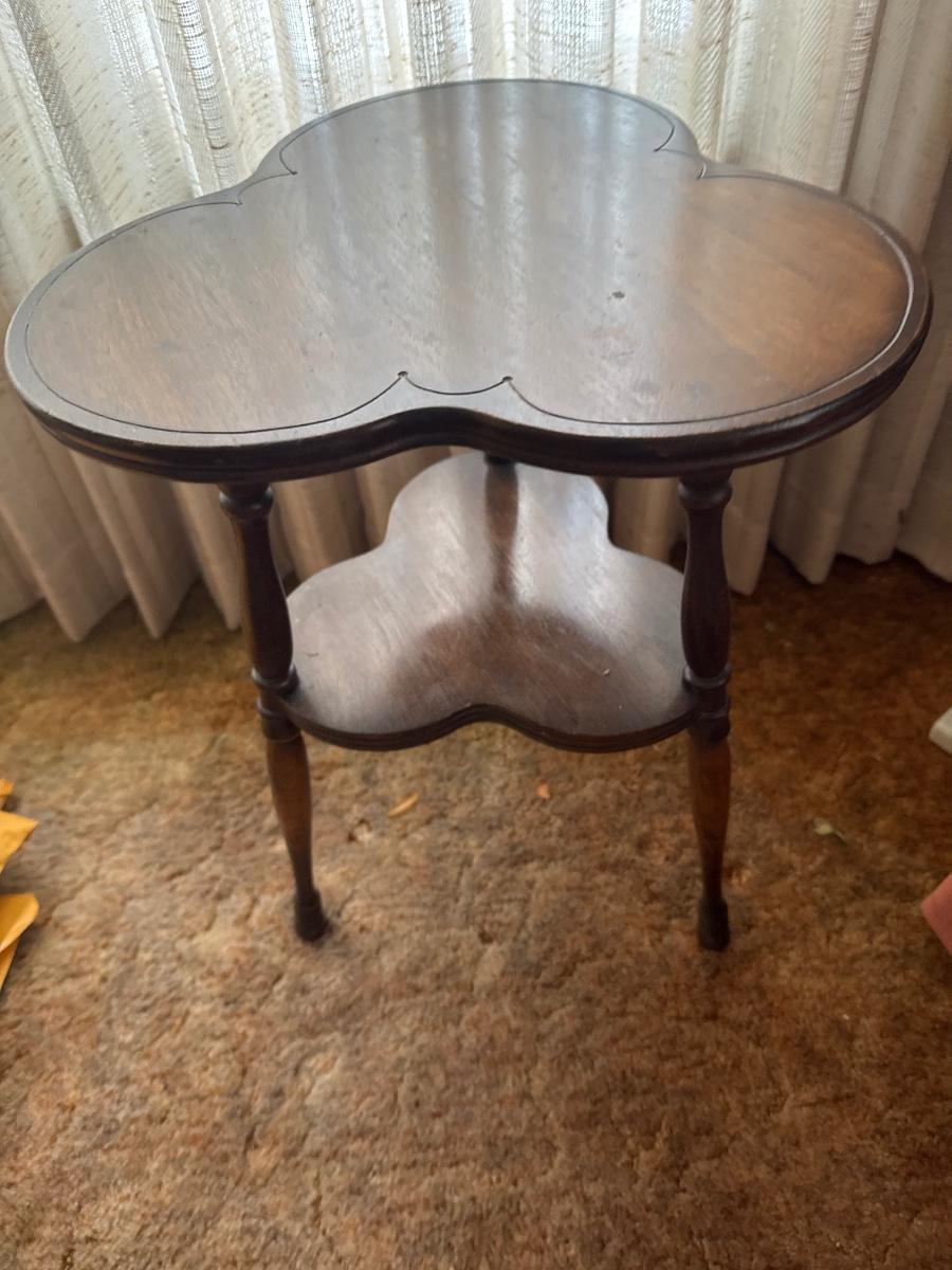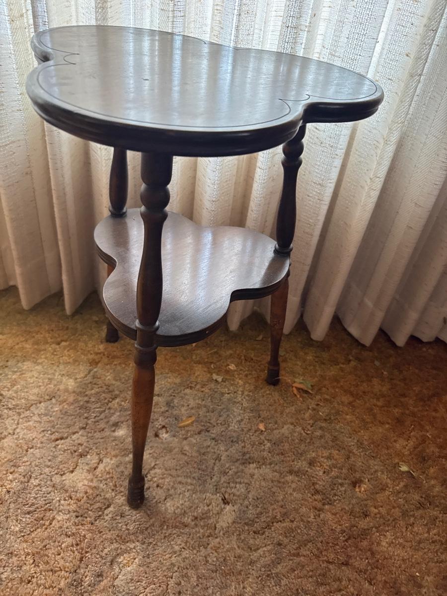 Small wooden side table. Dimensions are 1 foot 10 1/2 inches tall by 1‘4“ wide by 1‘3“ deep.
