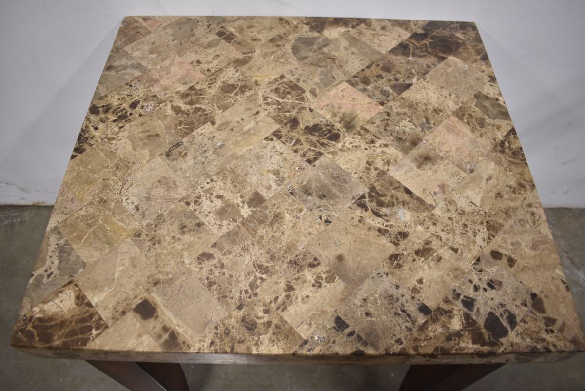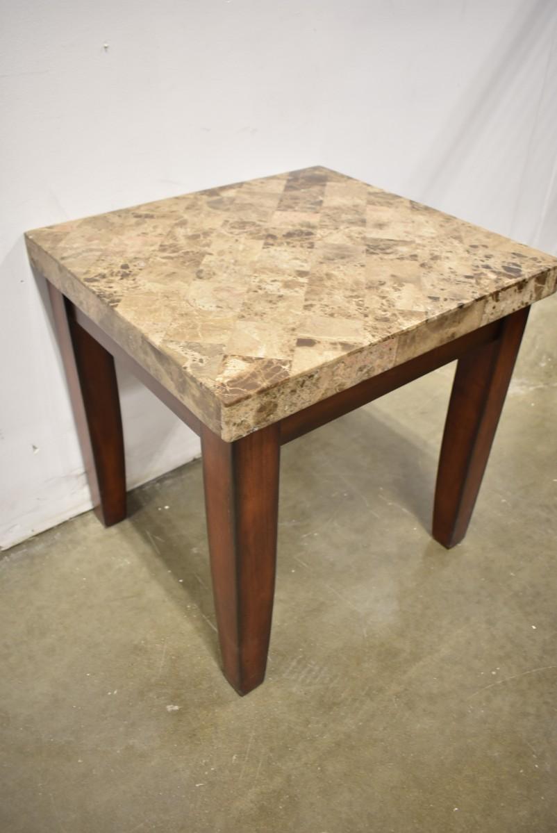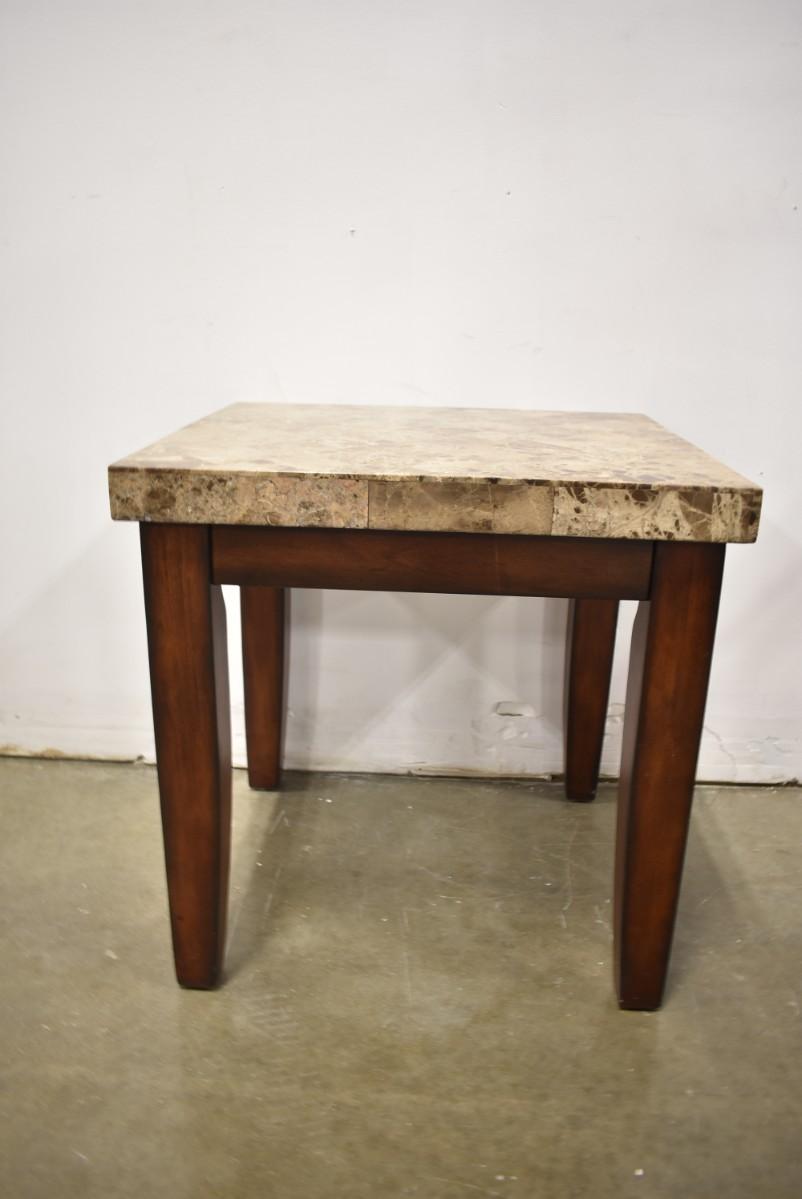 Small Wooden Table, Great Condition, Marble Like Top, 24" x 22" x 24 (1/2)"