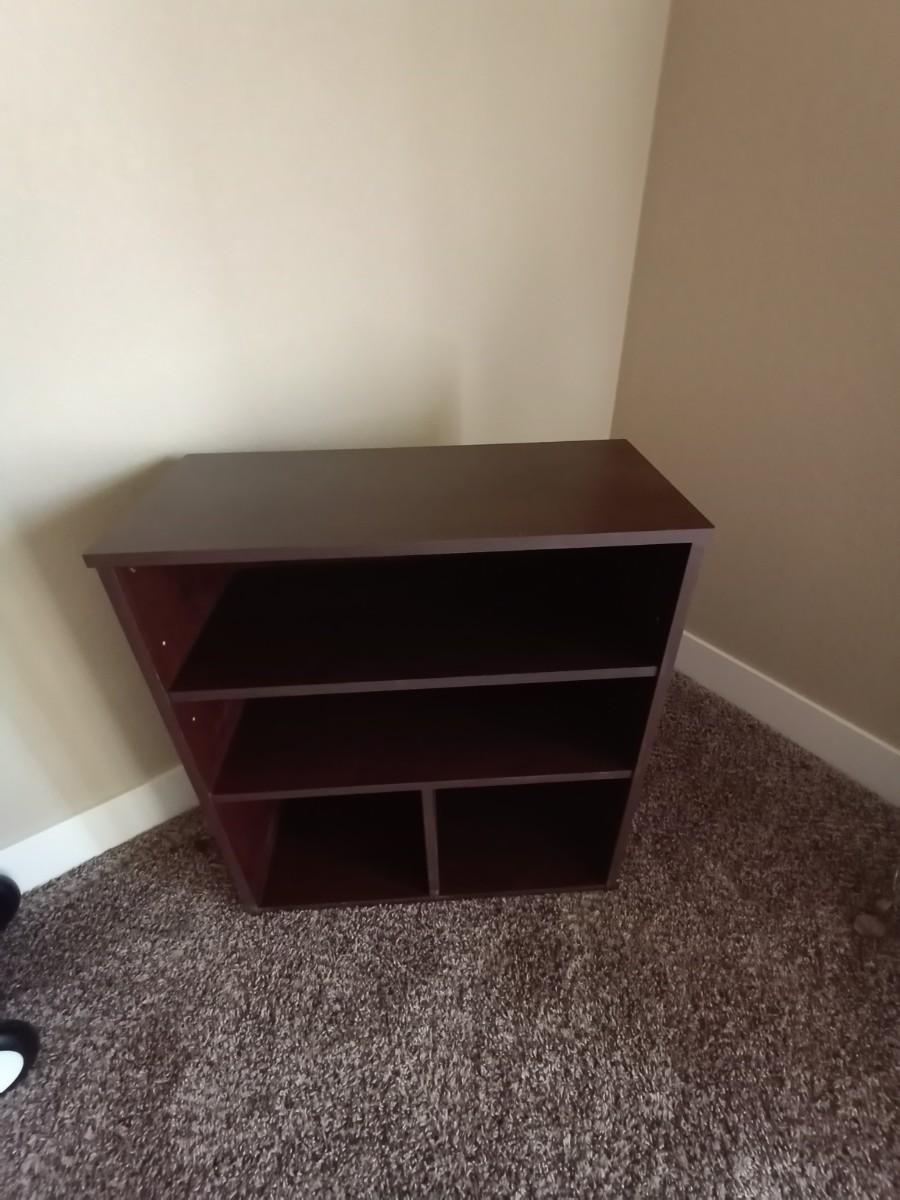 SMALL THREE SHELF SHELVING UNIT BOTTOM SHELF DIVIDED MEASURES 26X12X29