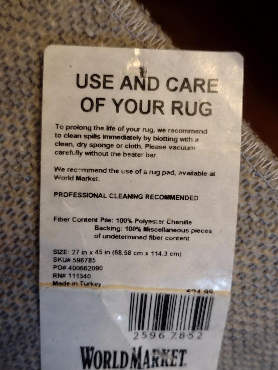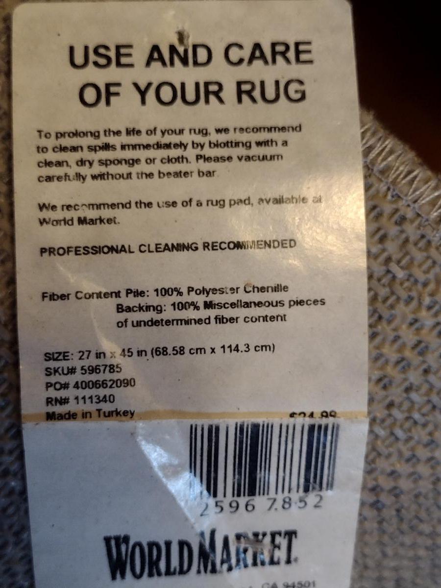 Small World Market Polyester Area Rug. Approx 27" x 45".