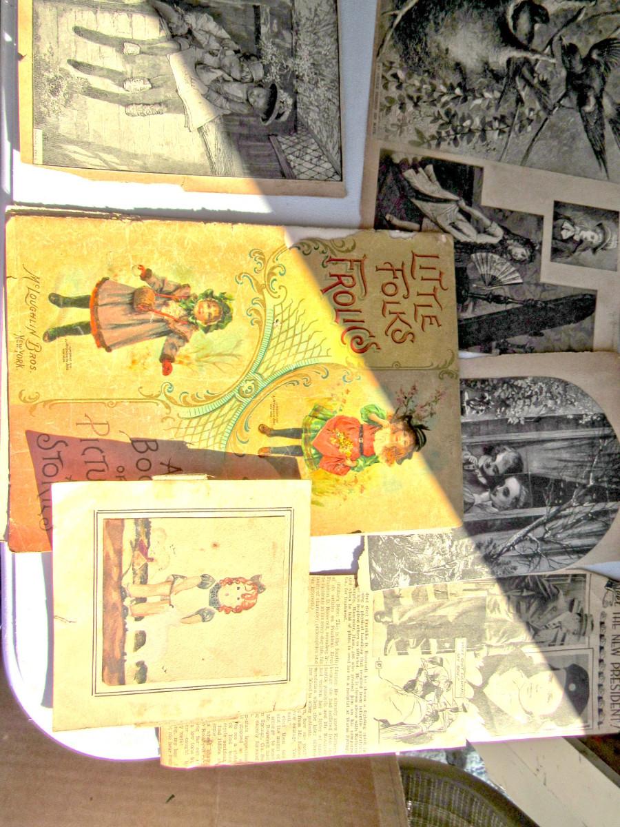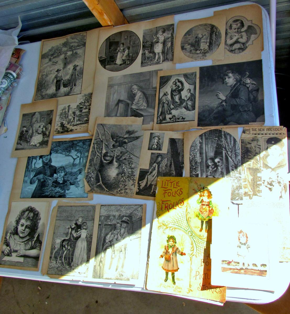 All torn out of old scrapbooks. Images are nice, some on both sides. Some may be advertising prints. Shipping is available at actual shipping cost plus $5.00 handling fee per box for supplies/labor. See our terms for details. All sales are final. Condition notes may not be all inclusive, we may miss some issues as most vintage items are not in mint condition and have some degree of wear, paint loss, etc, but we always try to note obvious damage.