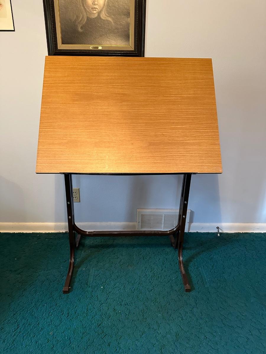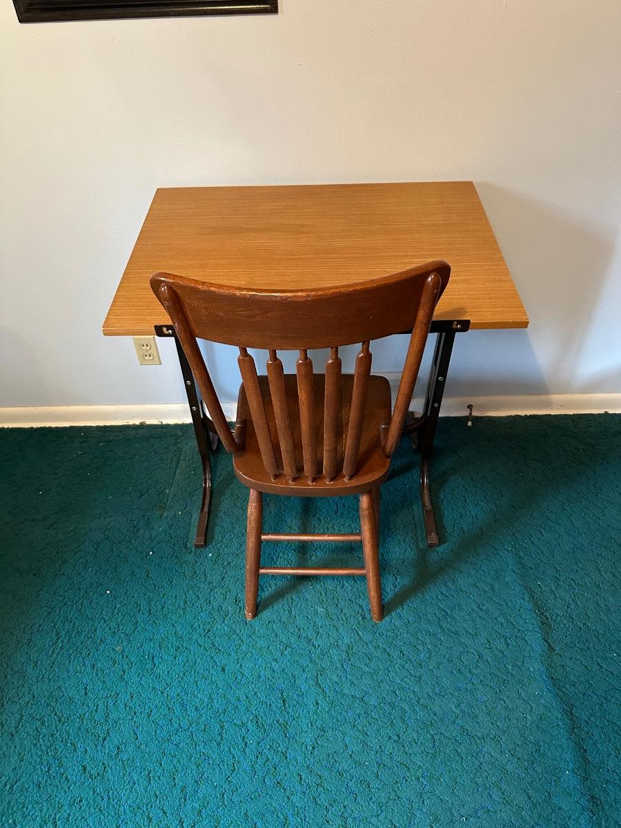 SMALLER DRAFTING TABLE WITH ANTIQUE CHAIR
